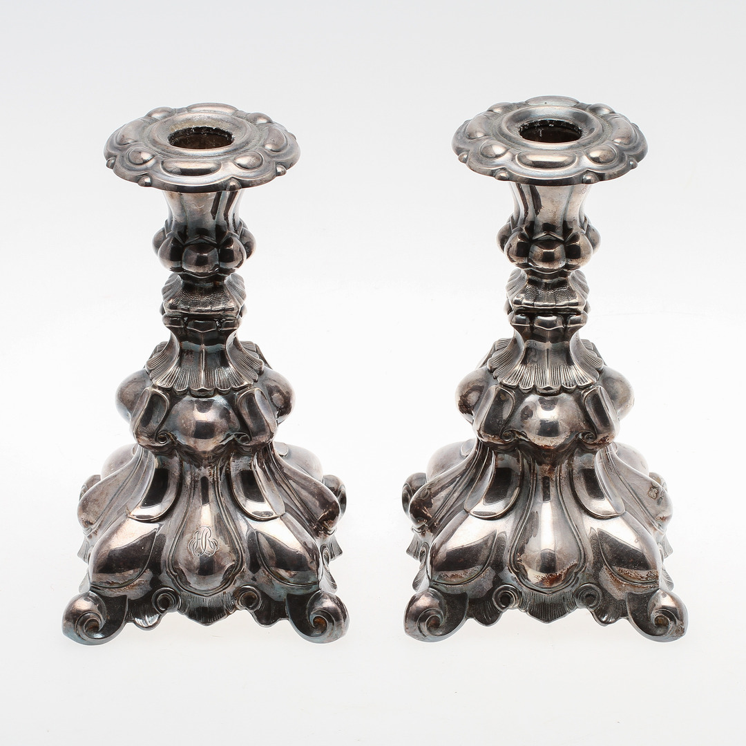 60034. KERZEN, 1 Paar, Silber, Rokoko-Stil.