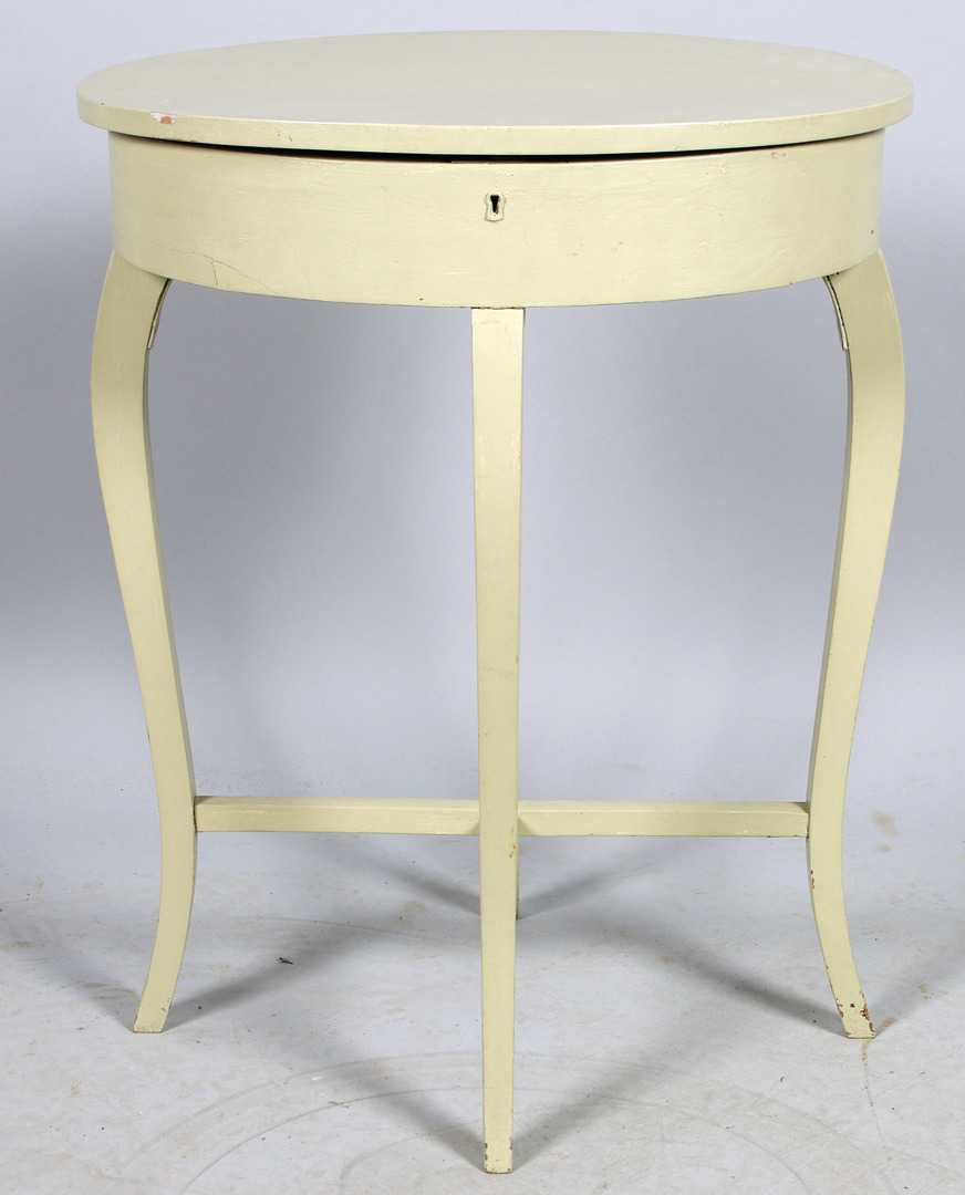 60921. NÄHTISCH, grau lackiert, Rokoko-Stil, 20. Jahrhundert.