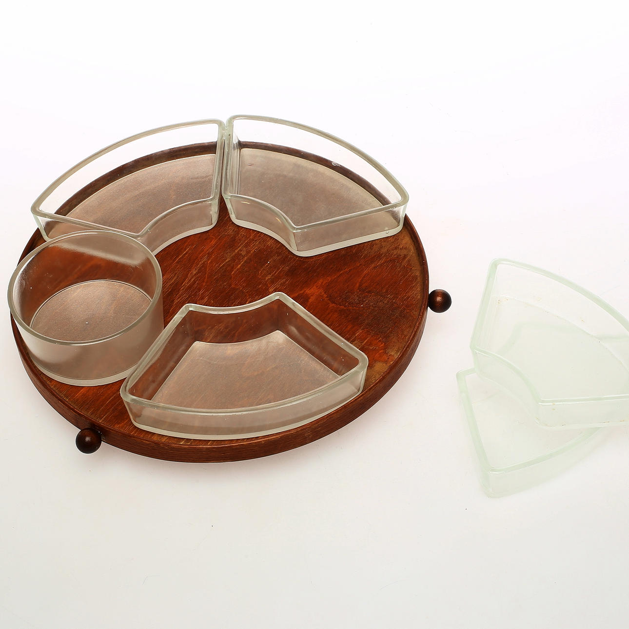 611431. TISCHKARUSSELL, Teak und Glas.