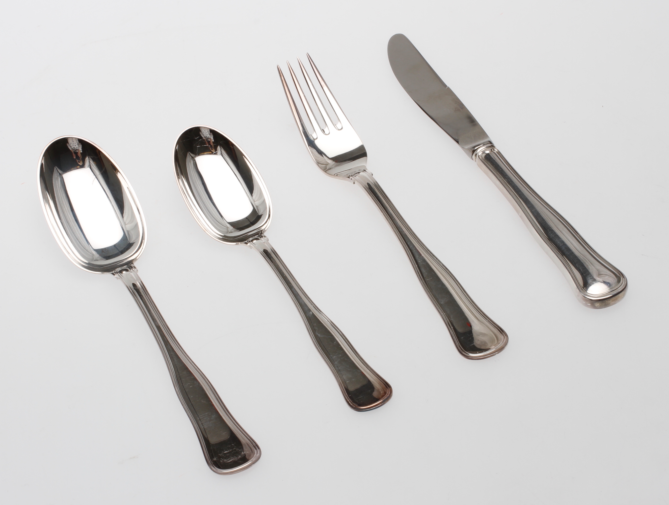 61272. BESTECK, 4-teilig, Silber, "altdänisch", Gewicht ca. 180 Gramm.