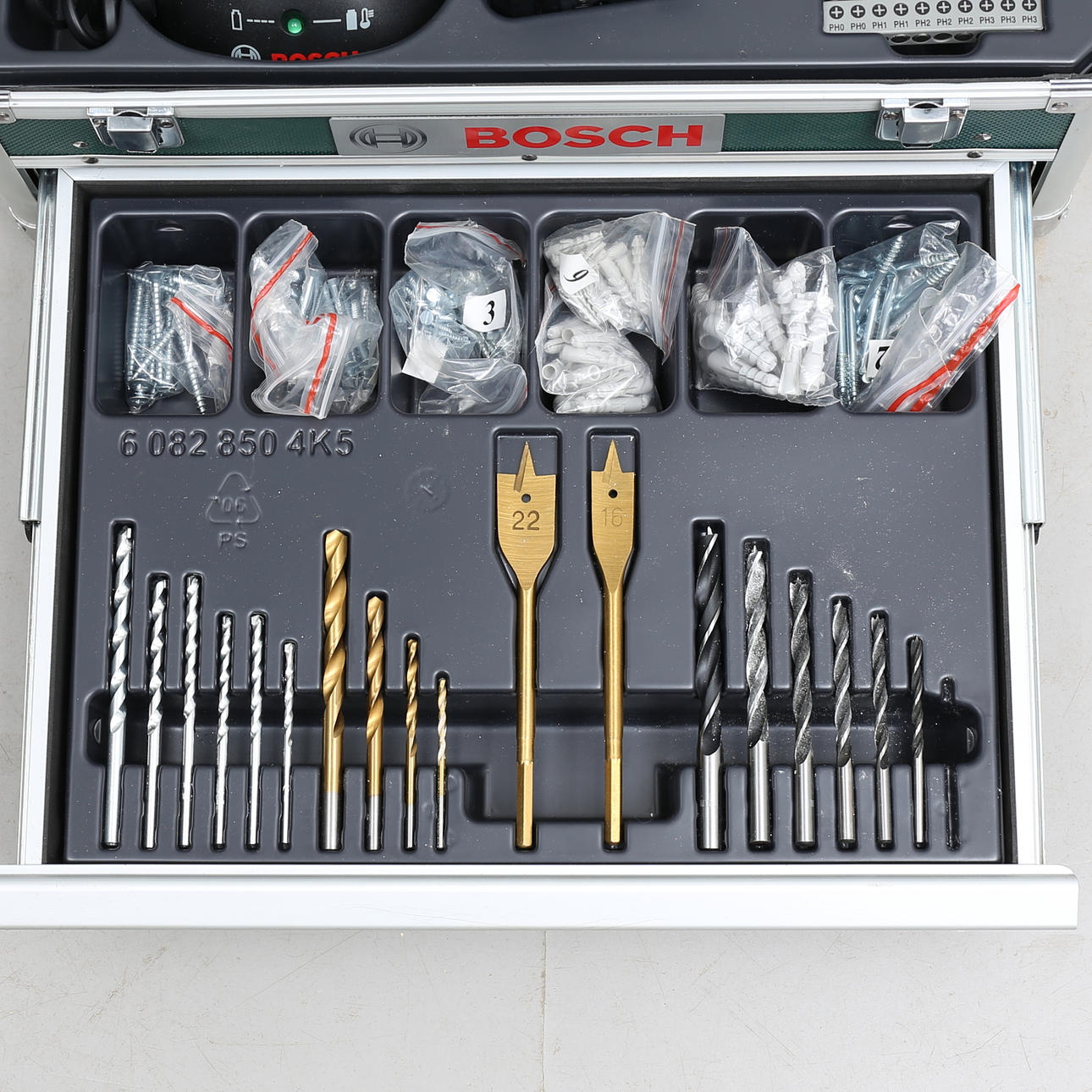 616775. SCHRAUBENZIEHER, Bosch PSR 18 mit Zubehör.