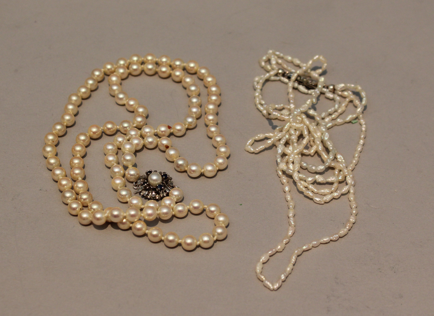 62639. Perlenkette mit Silberschließe, beide gestempelt 925.