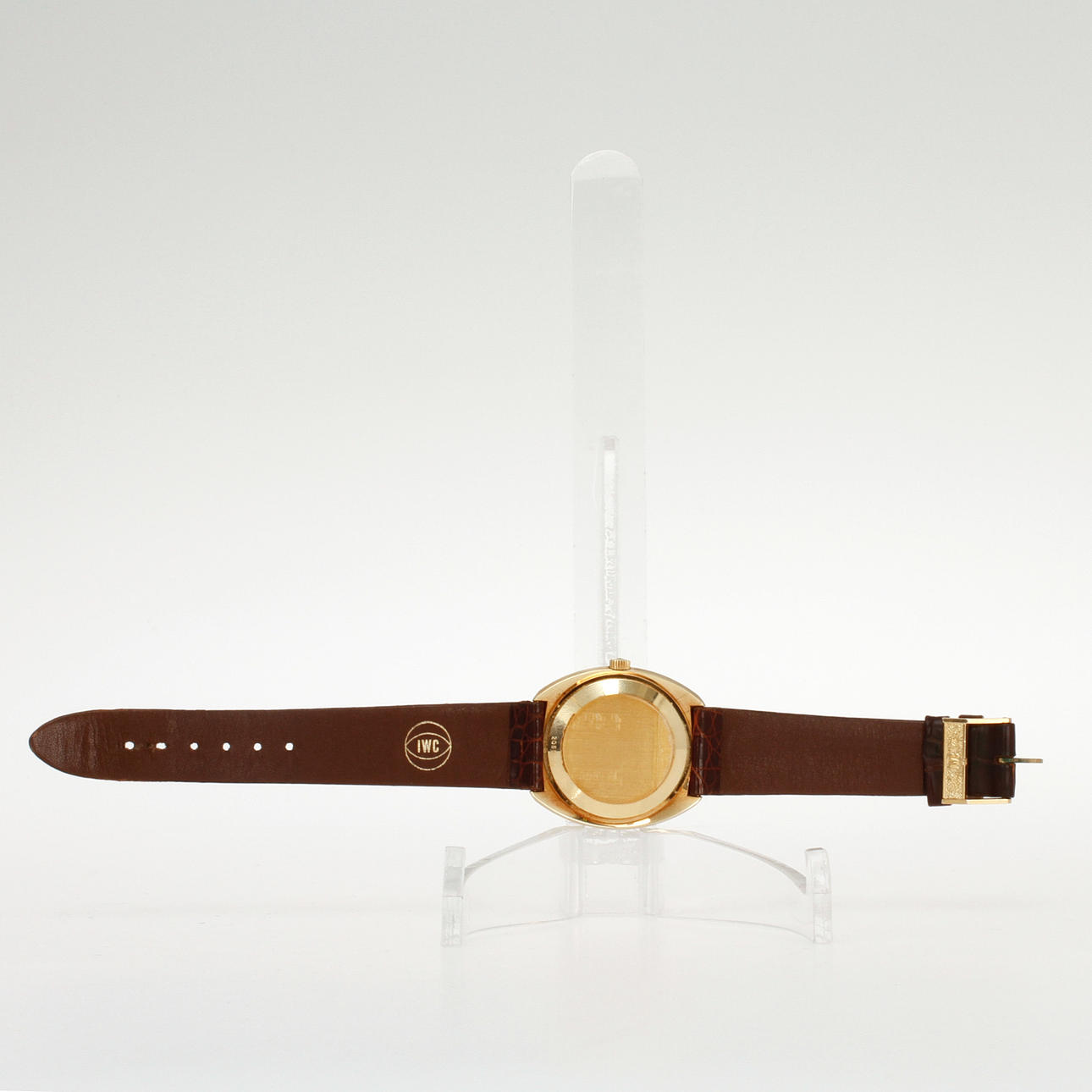 IWC Schaffhausen, 18 Karat Gold. Gehäuse 36 mm. Plexiglas, originales IWC-Lederband und Schließe. Automatik, Datum. Inklusive Originalverpackung.