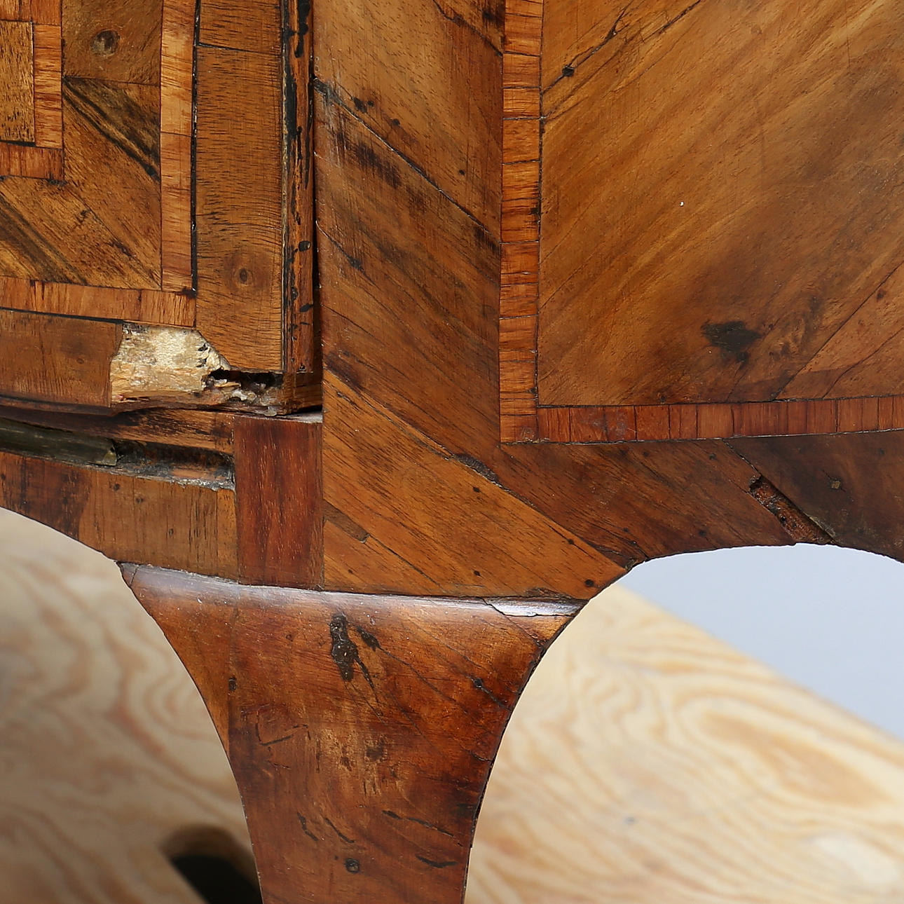 Tragen. Kratzer und Markierungen. Trockenrisse und Furnierschäden. Ablehnung. Spätere Anfälle. Instandsetzung.