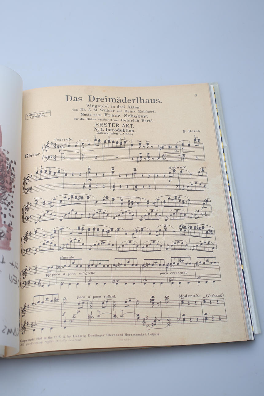 Mit Farbdrucke auf Noten „Das Dreimäderlhaus“;