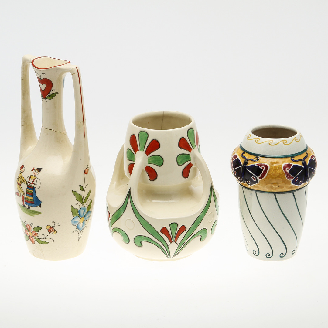 63340. VASER, 3 Stück, Feuersteinware, darunter Alf Wallander.
