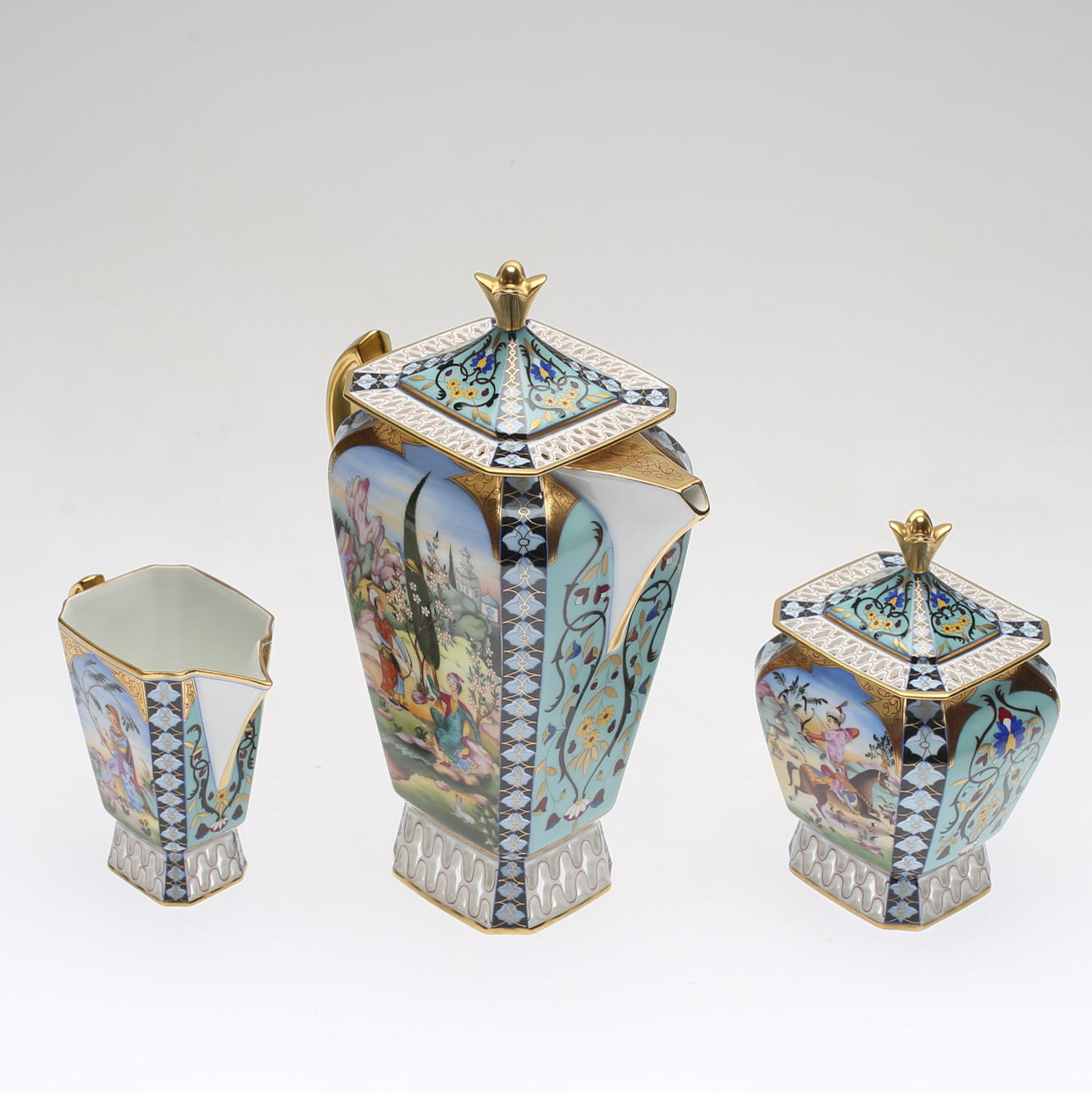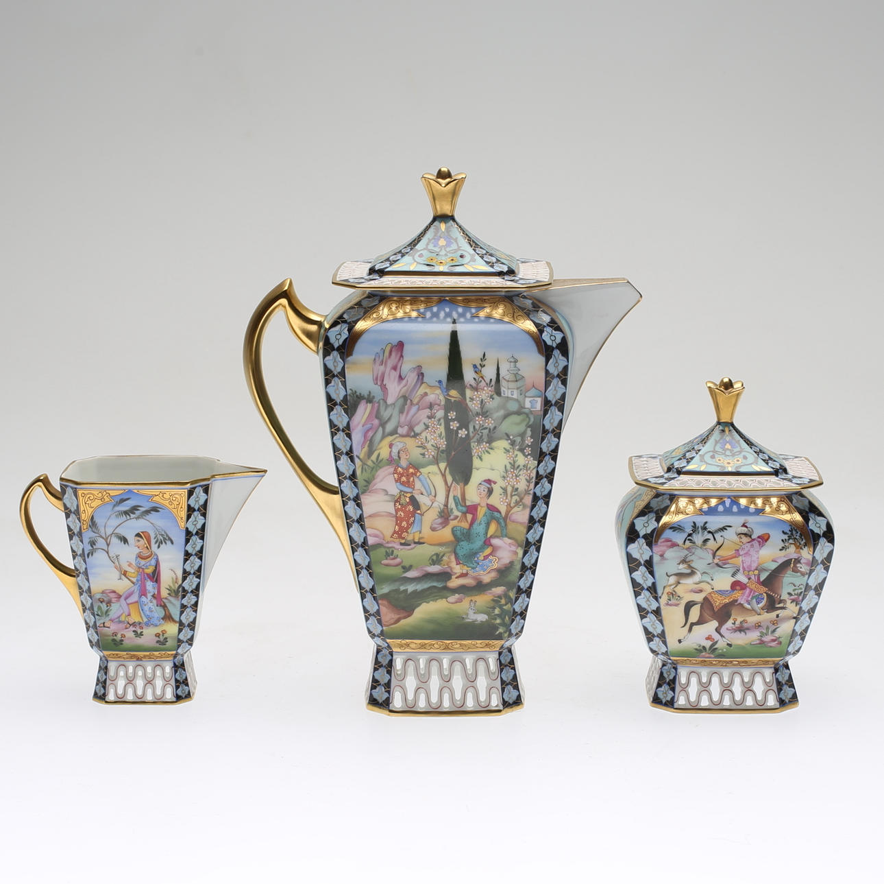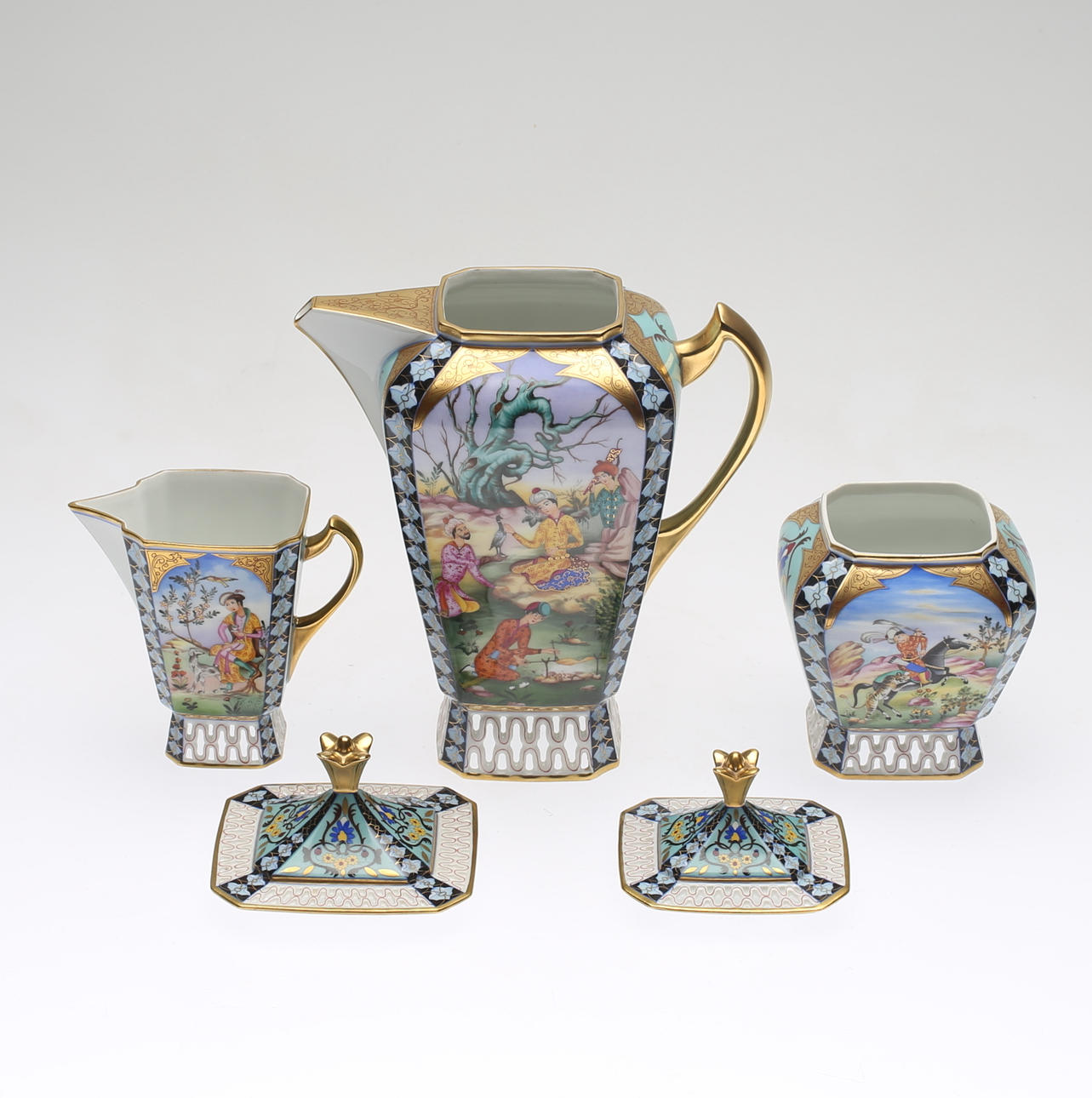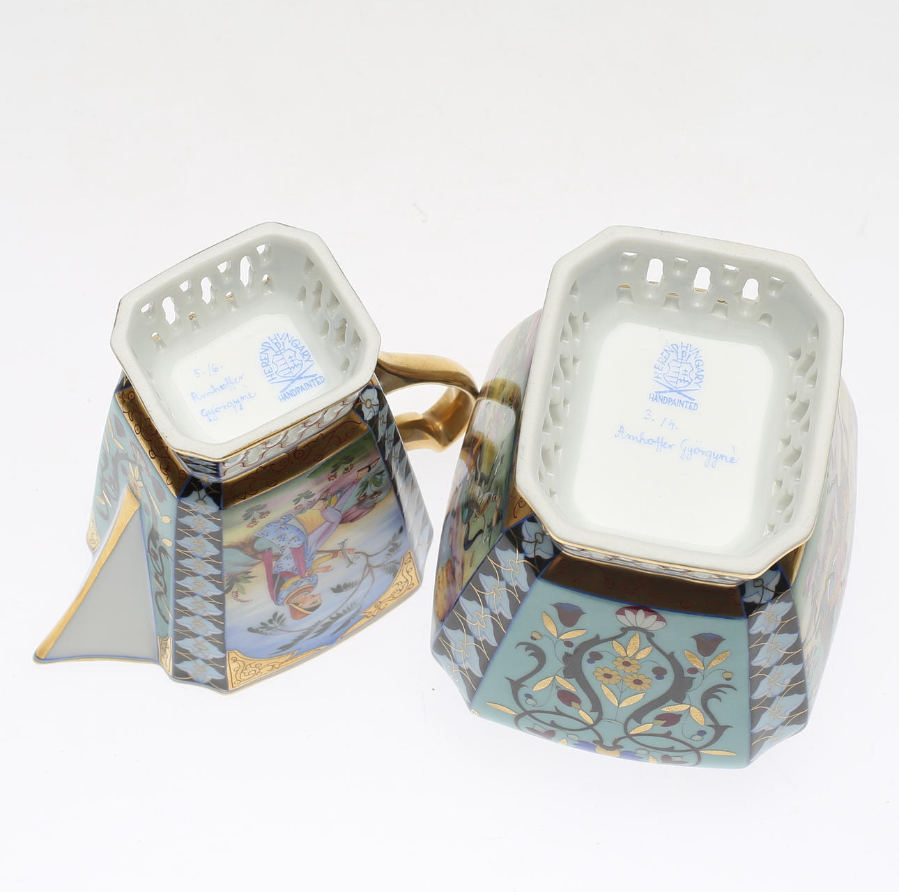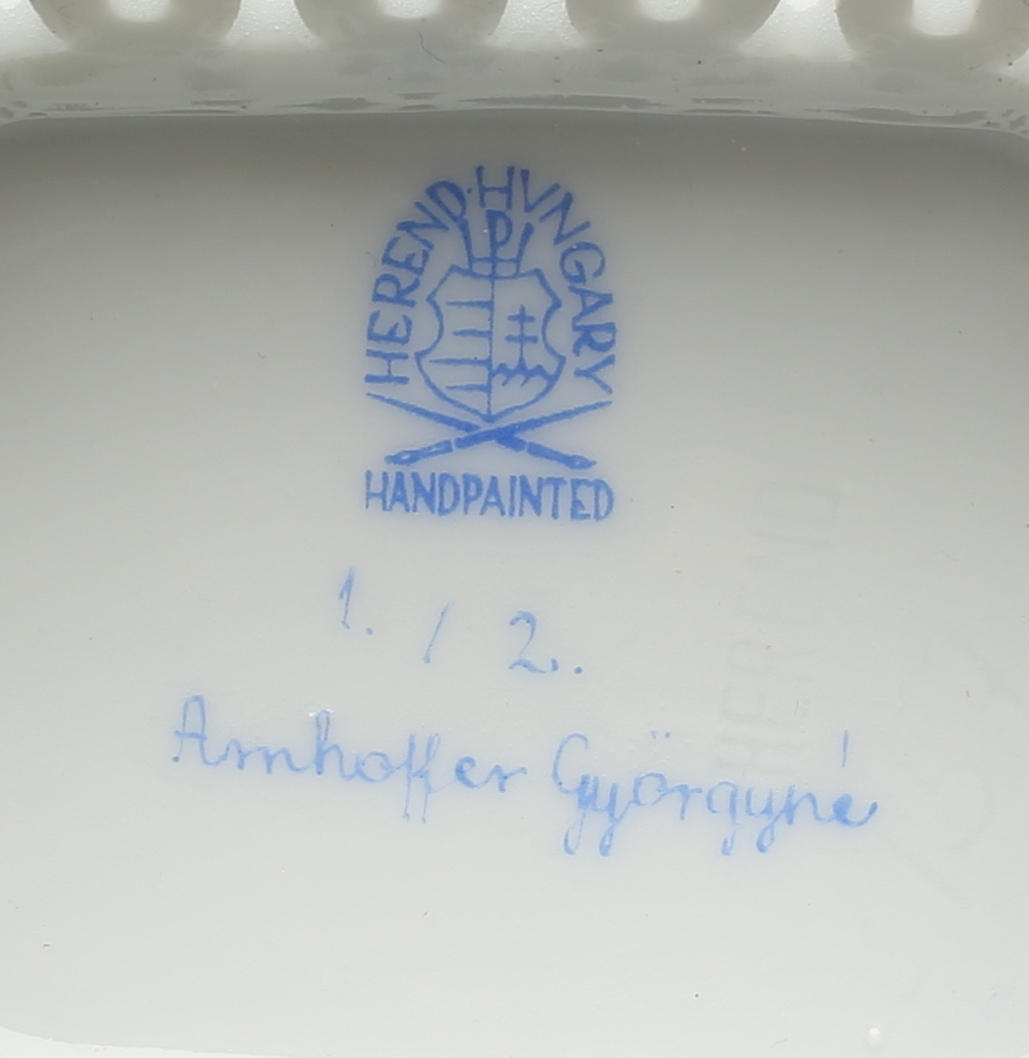 Handgemaltes Dekor. Durchbrochene Dekoration in Fuß und Deckel.