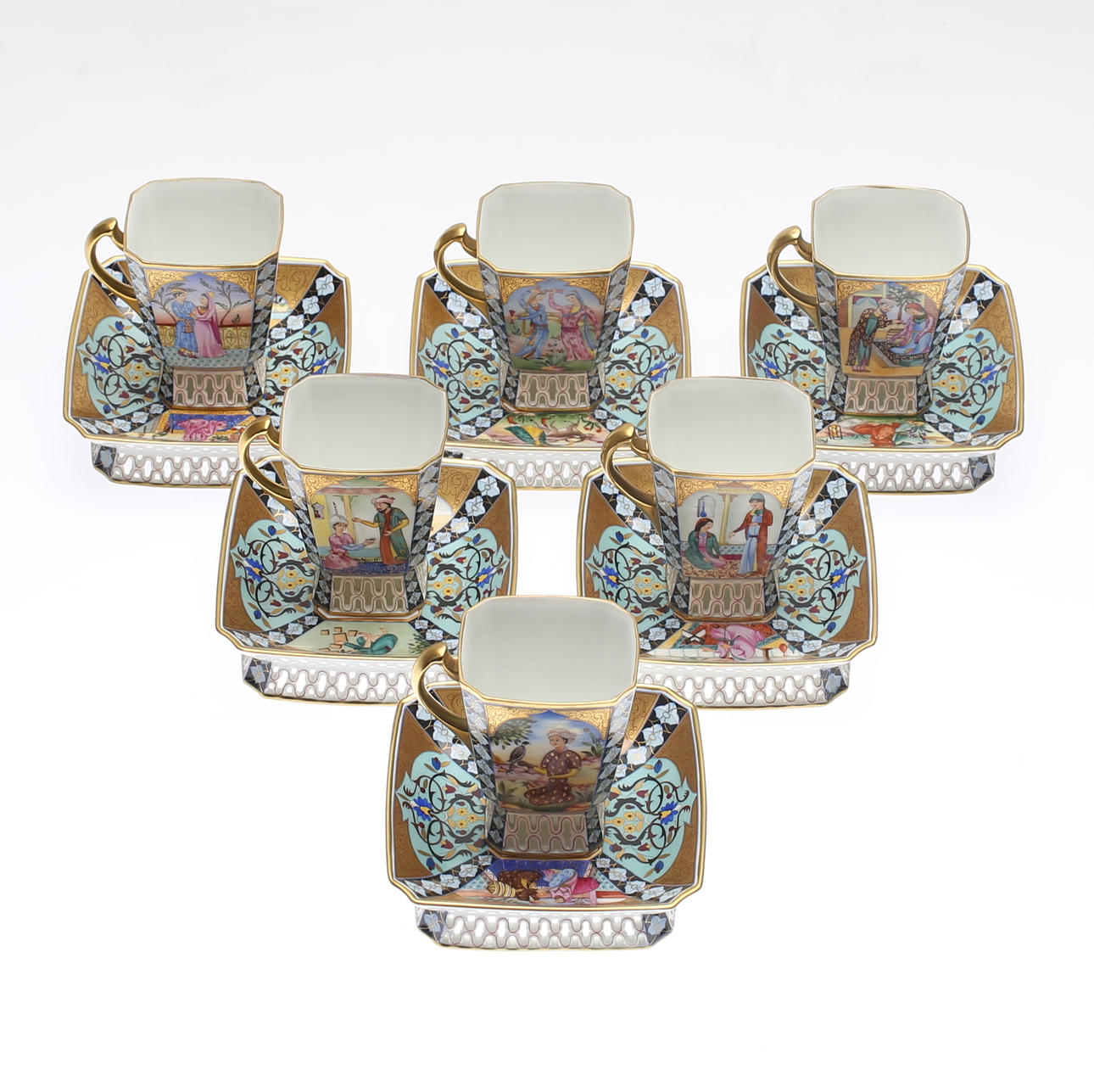 6 Mokkatassen mit Untertassen, Höhe der Tassen ca. 8 cm.