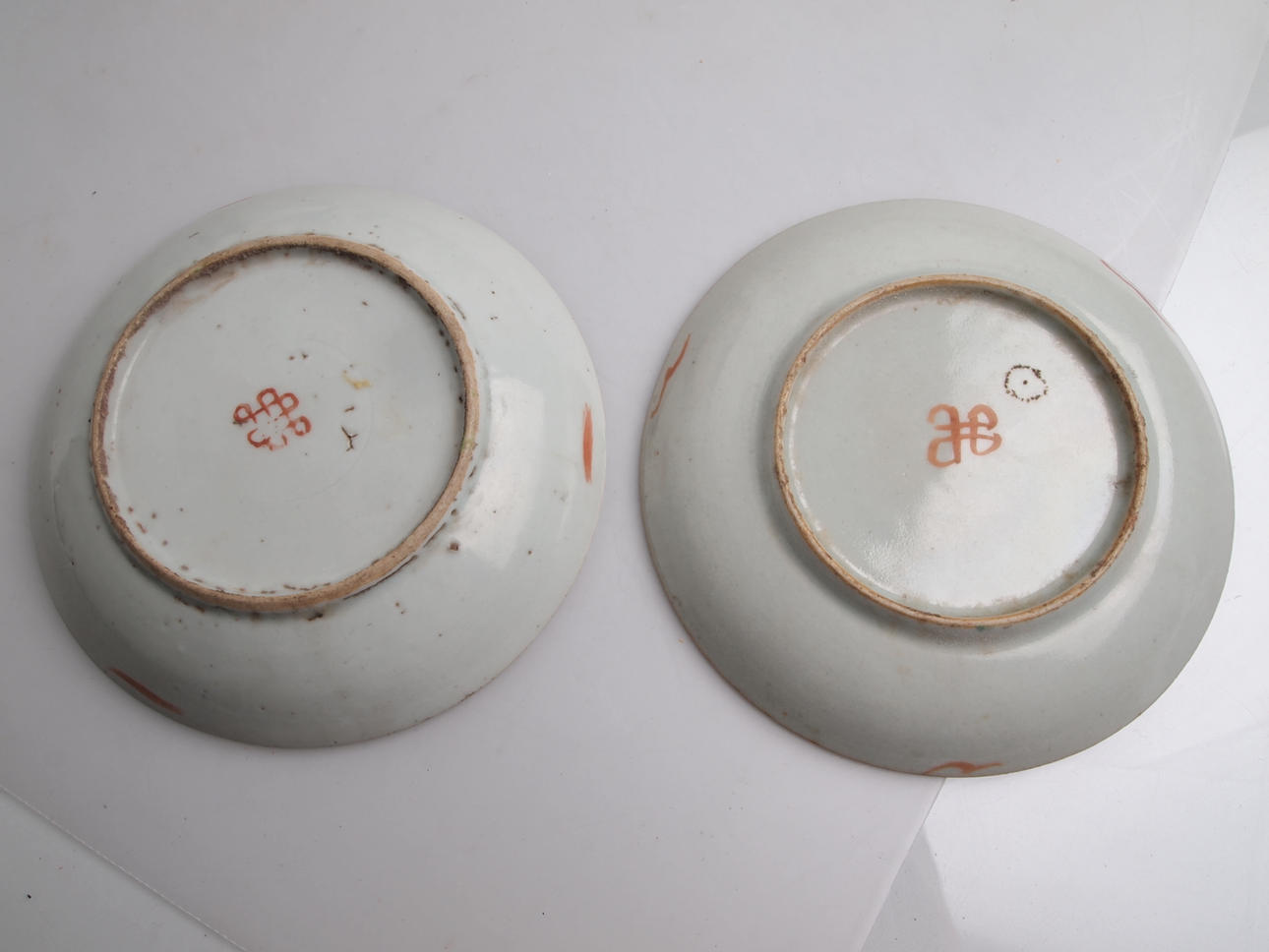 Altersbedingte Gebrauchsspuren, vereinzelte Farbabsplitterungen am zweitgrößten Fass, vereinzelte Verfärbungen, Farbabrieb.