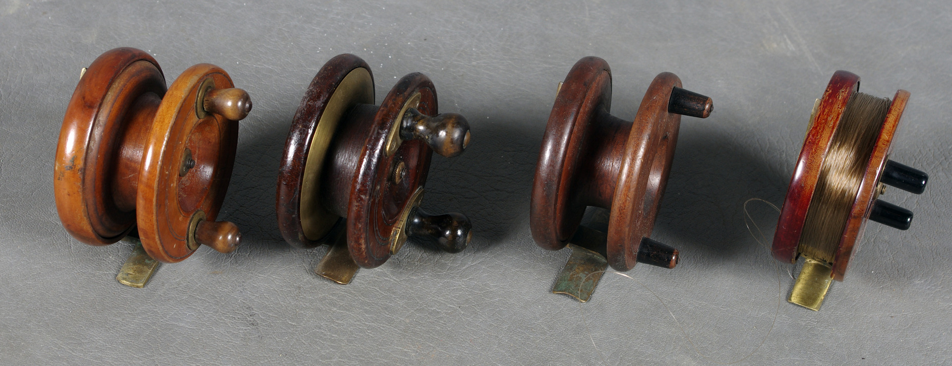 63777. ÄLTERE FLIEGENFISCHERROLLEN, Holz.