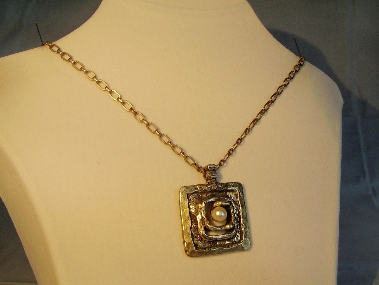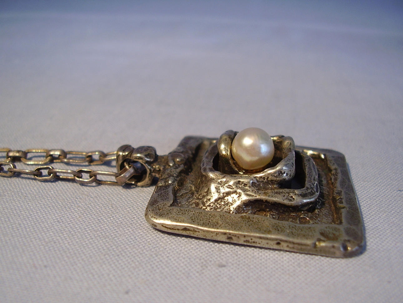Anhänger an Kette aus der Serie "Labyrinth" mit organischem Muster und echter grauer Akoyaperle.