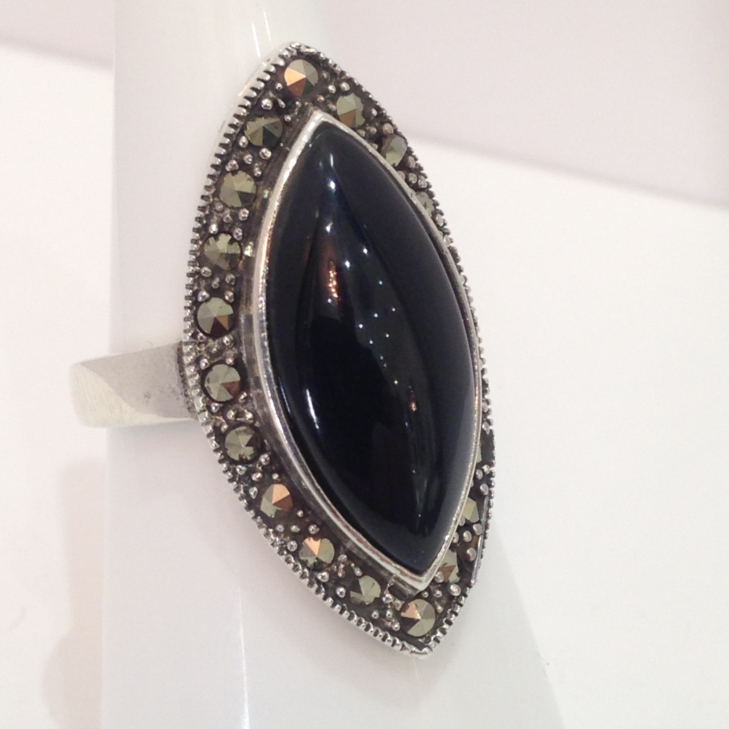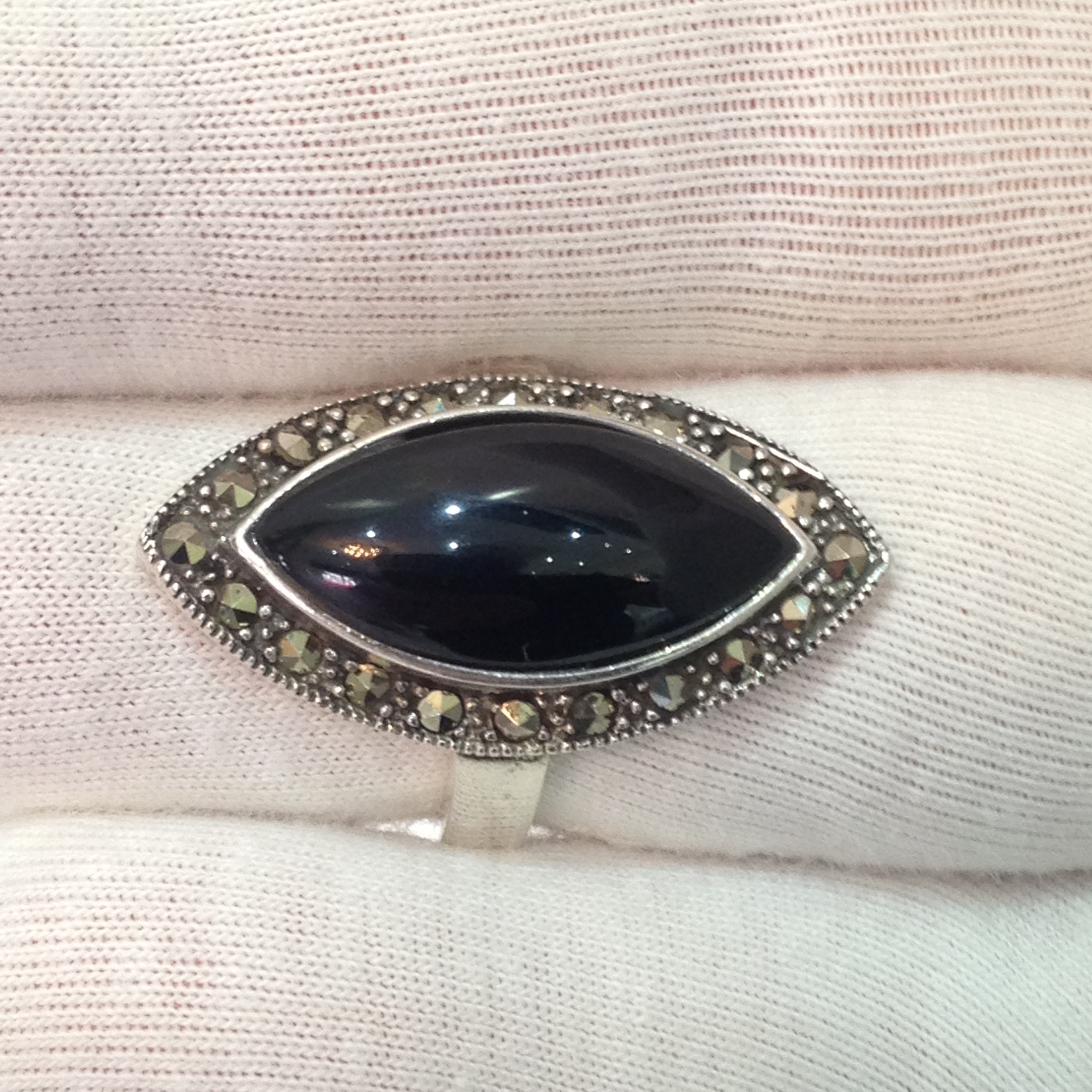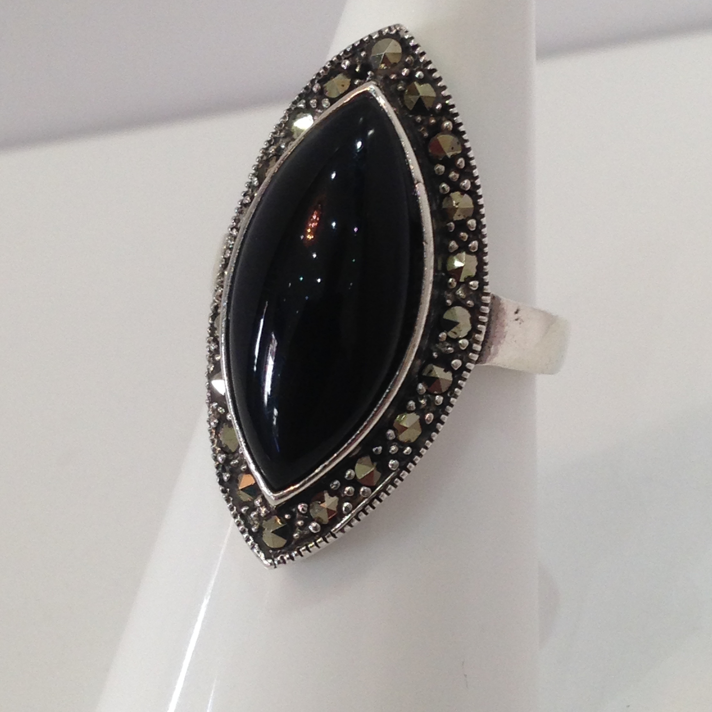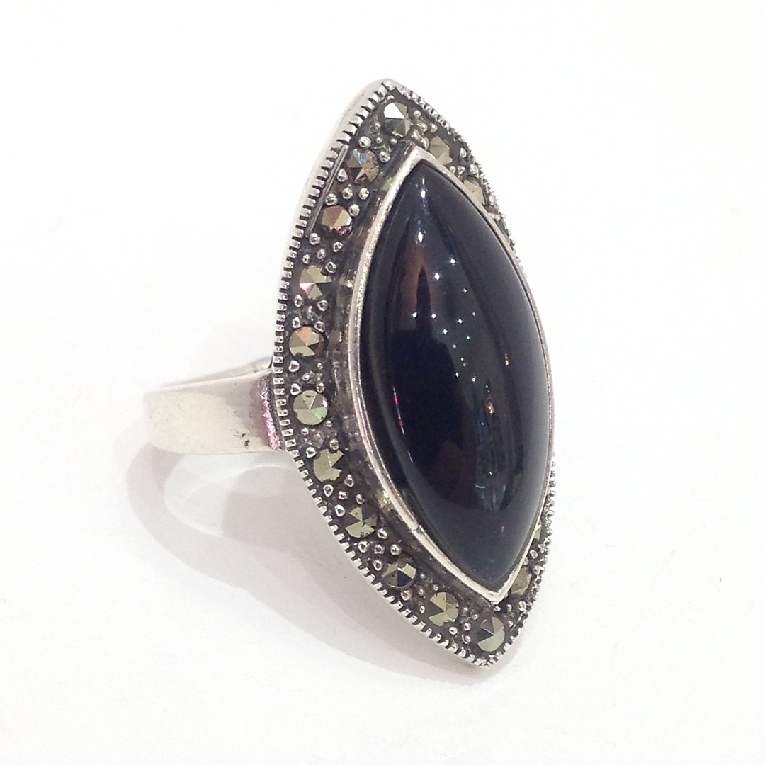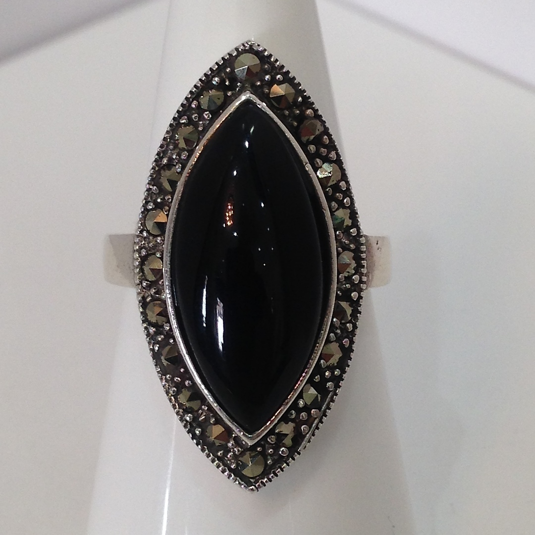 639790. MARKASIT-ONYX-RING AUS SILBER.