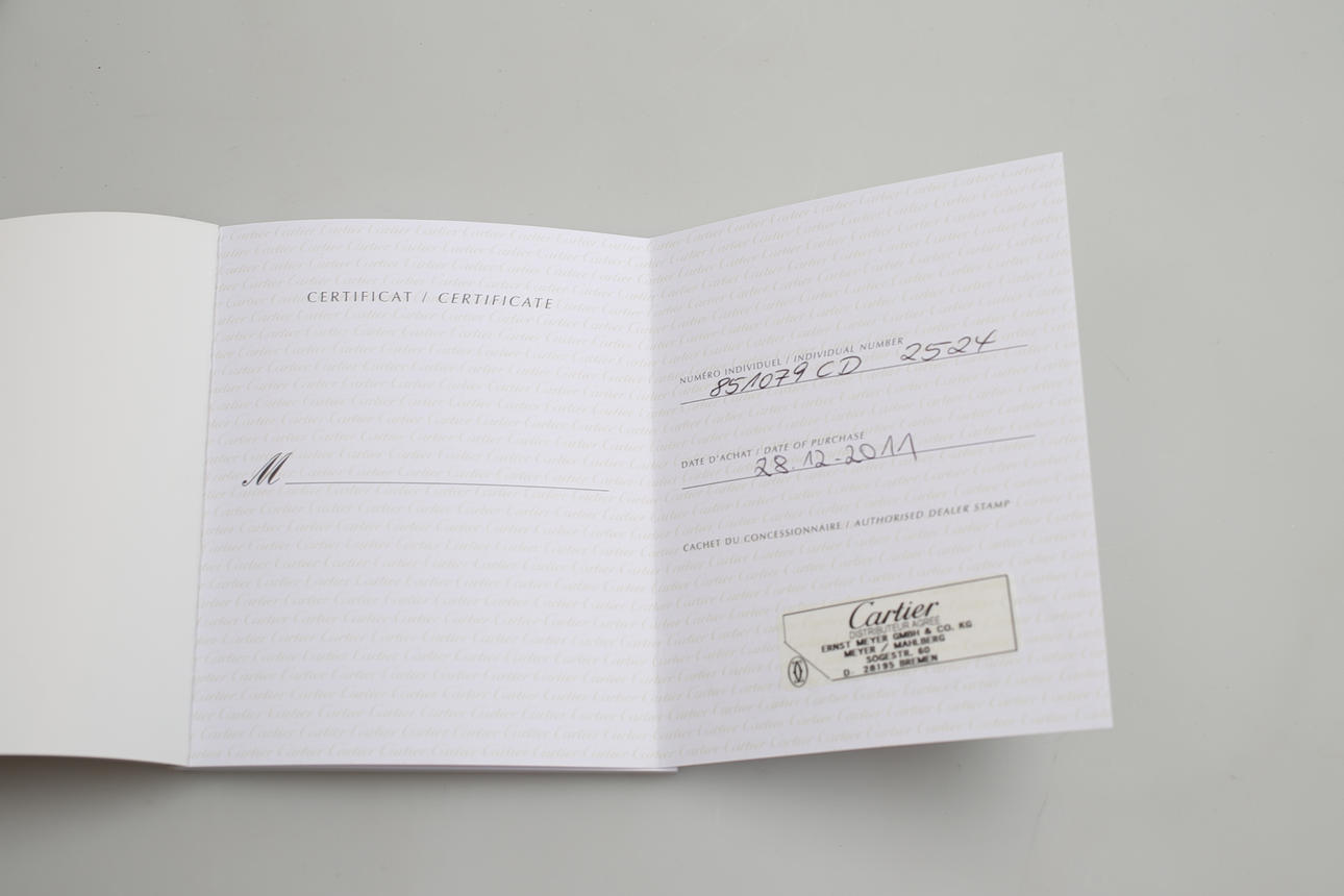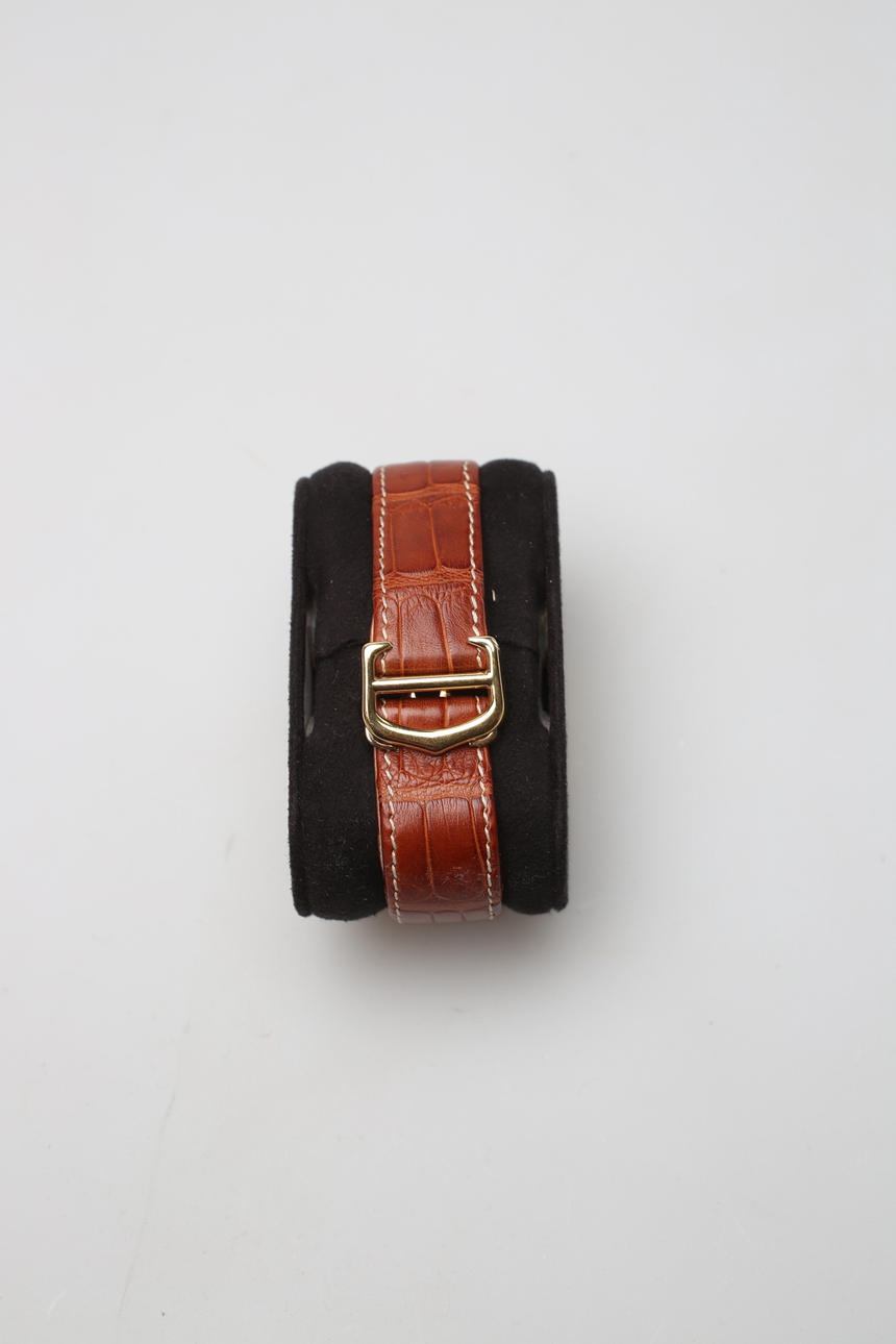 Originales, braunes Cartier-Lederarmband mit originaler 750/000 GG-Cartierschließe (längenverstellbar). FULL-SET. In originaler Box, Papiere (Nordeutscher Juwelier, Verkaufsdatum 2011), sowie ungetragenes, schwarzes Lederarmaband.