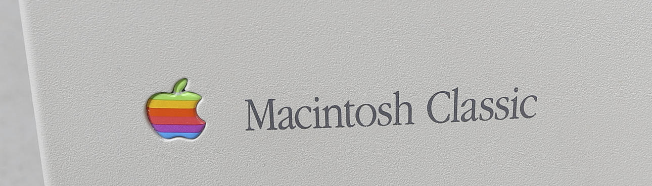 COMPUTER, Macintosh Classic mit Tastatur, Maus und Drucker.