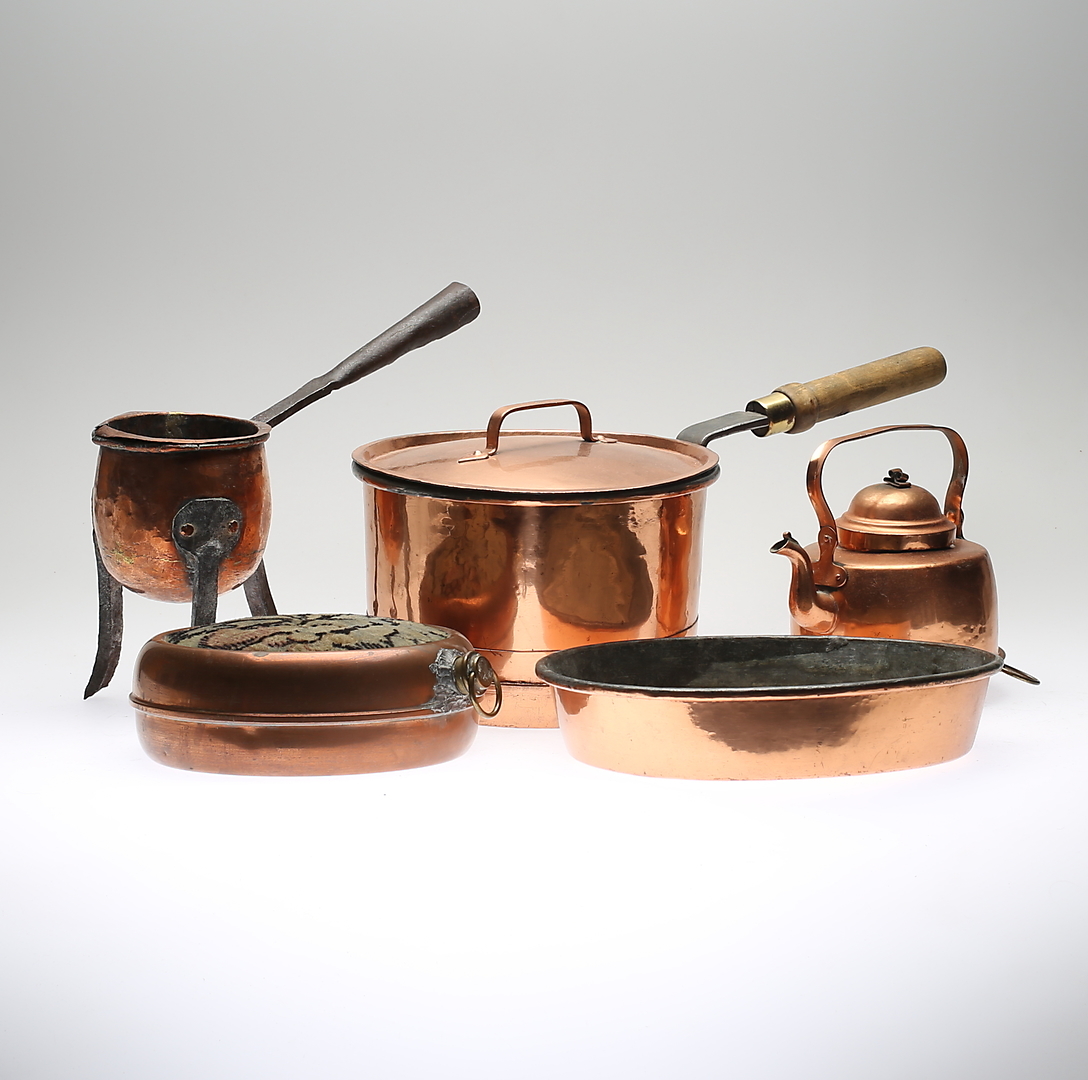 647860. KUPFEROBJEKTE, 5-teilig, 19./20. Jahrhundert.