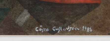 65002. GÖSTA GUSTAVSON. Drachenpilot, Mischtechnik, signiert.