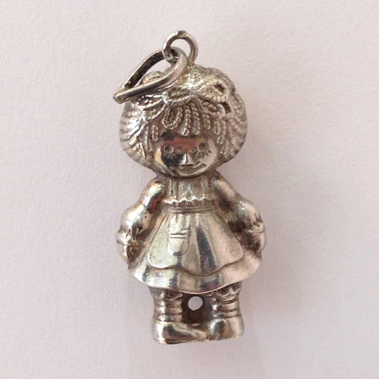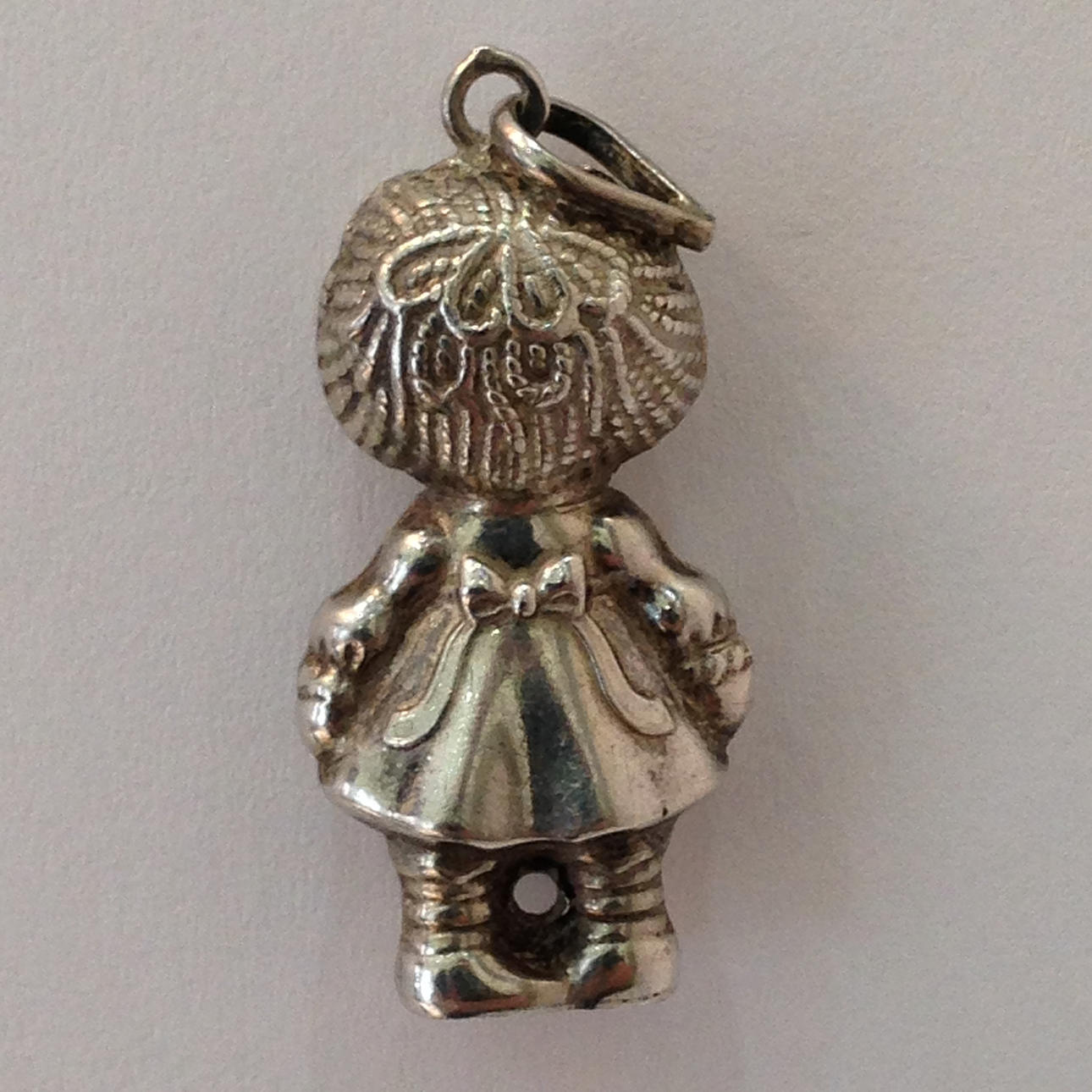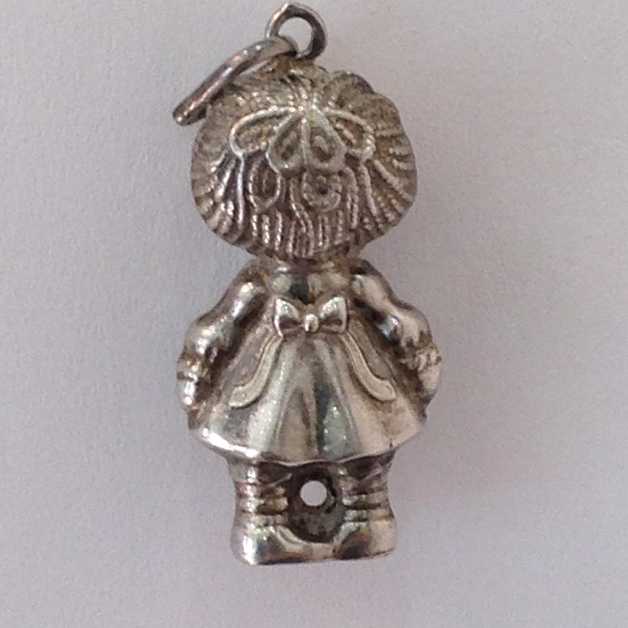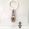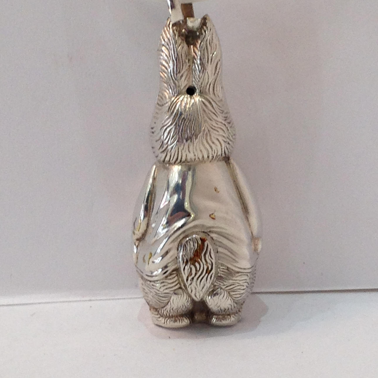 Die Länge des Kaninchens beträgt: 70,5 mm Die Breite des Kaninchens beträgt: 25,5 mm Der Durchmesser des Beißrings beträgt: 47,5 mm Das Gewicht des Kaninchens beträgt: 21,0 Gramm Als nächstes kommt der versilberte Dolly-Anhänger, der mit "Macmillan Topazio" gestempelt ist 1975".