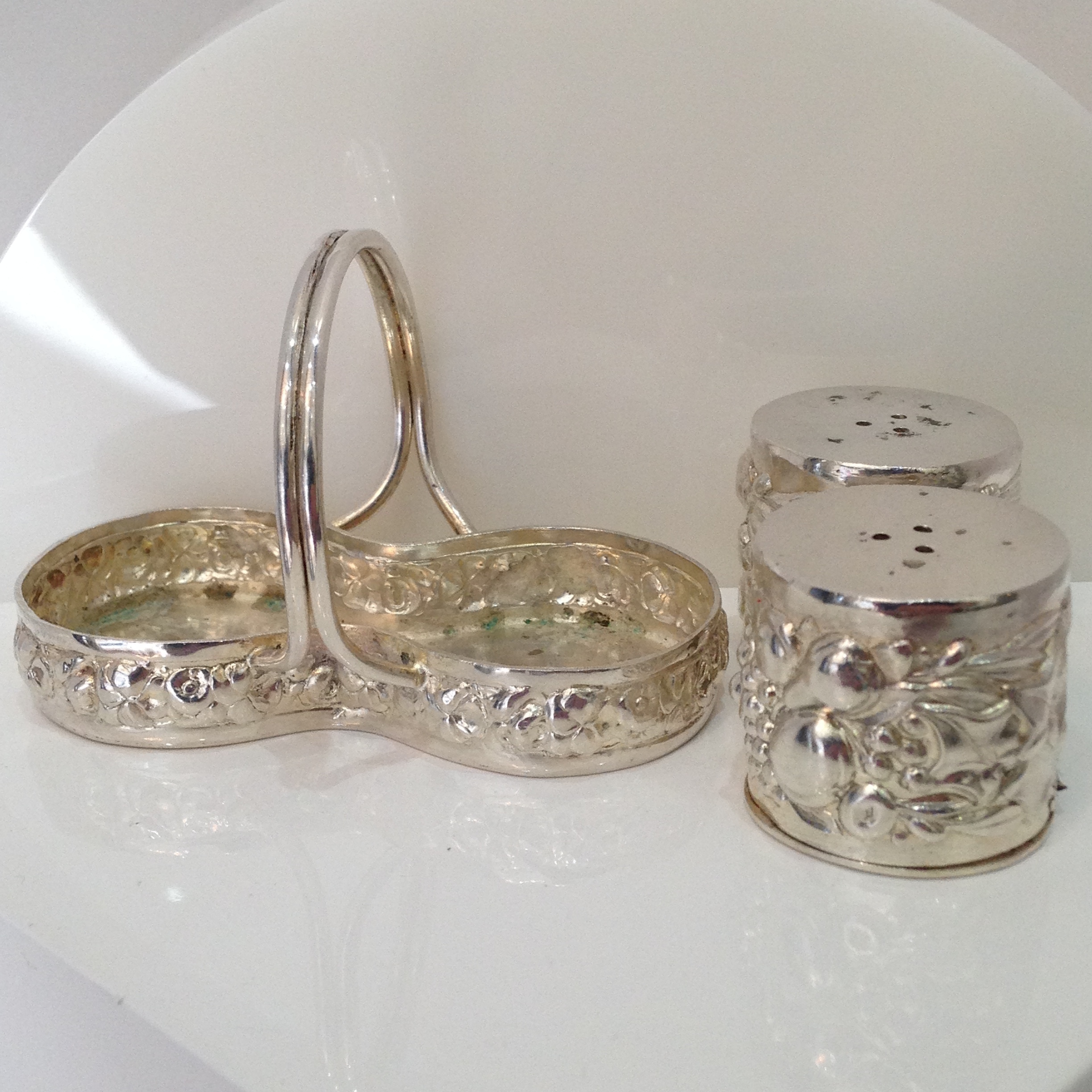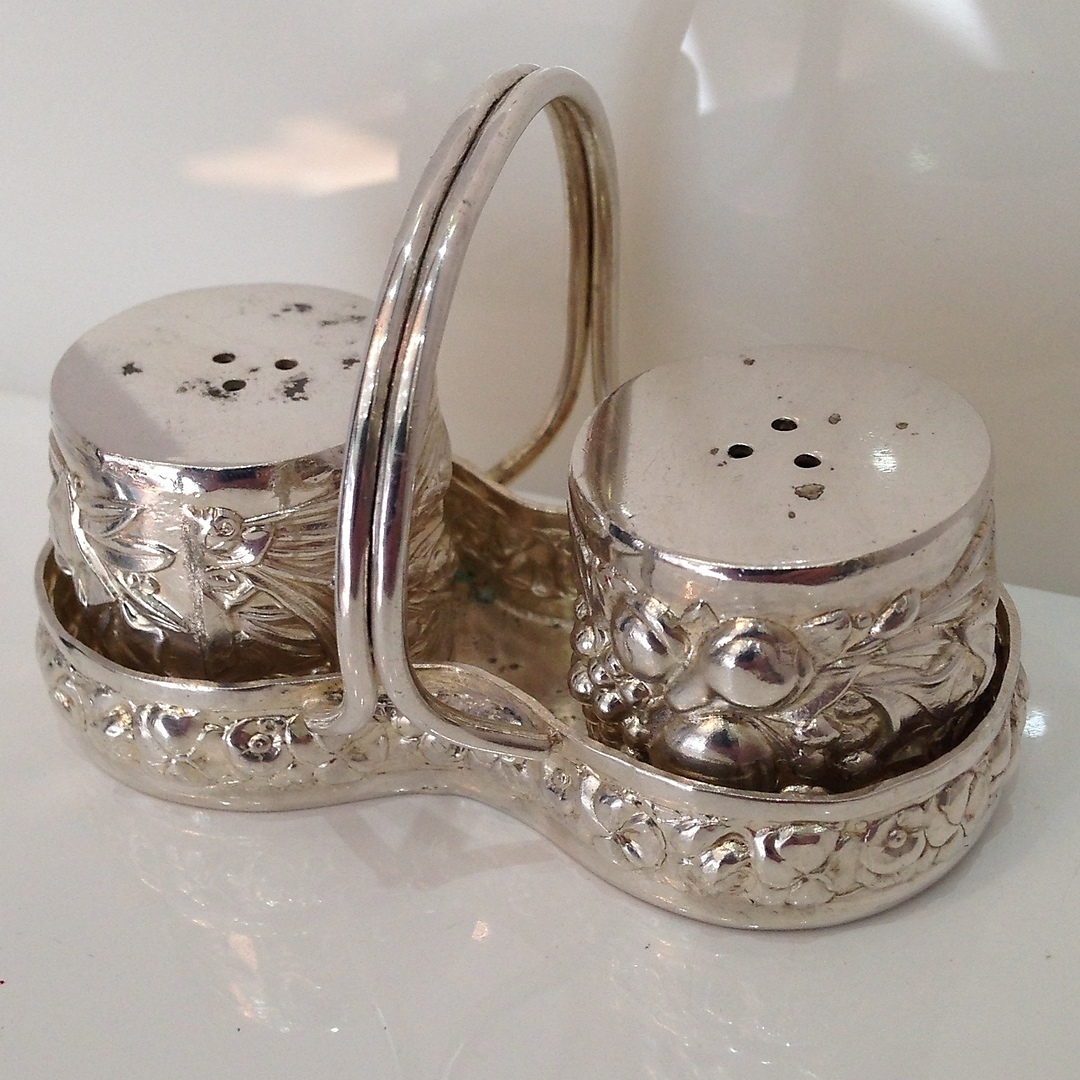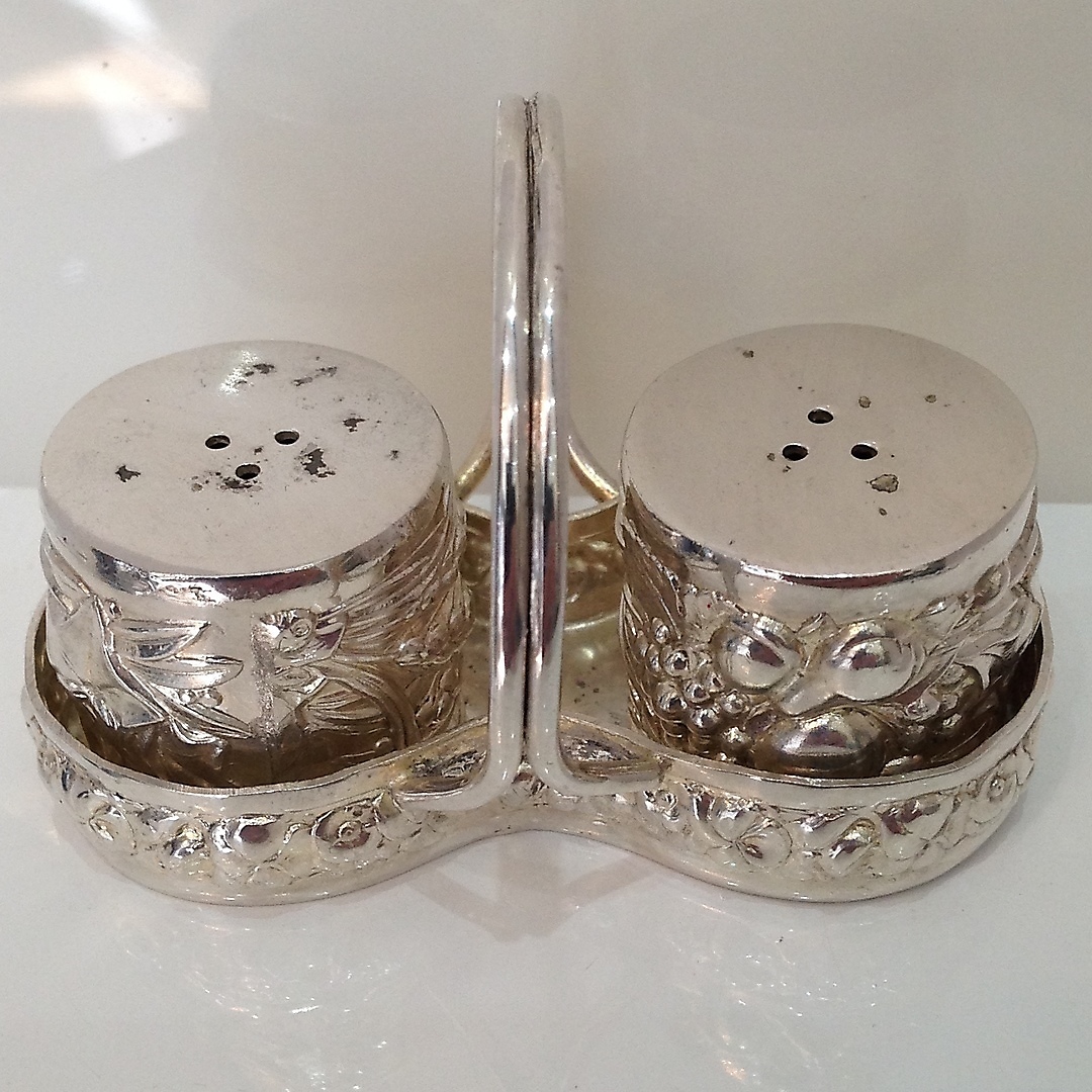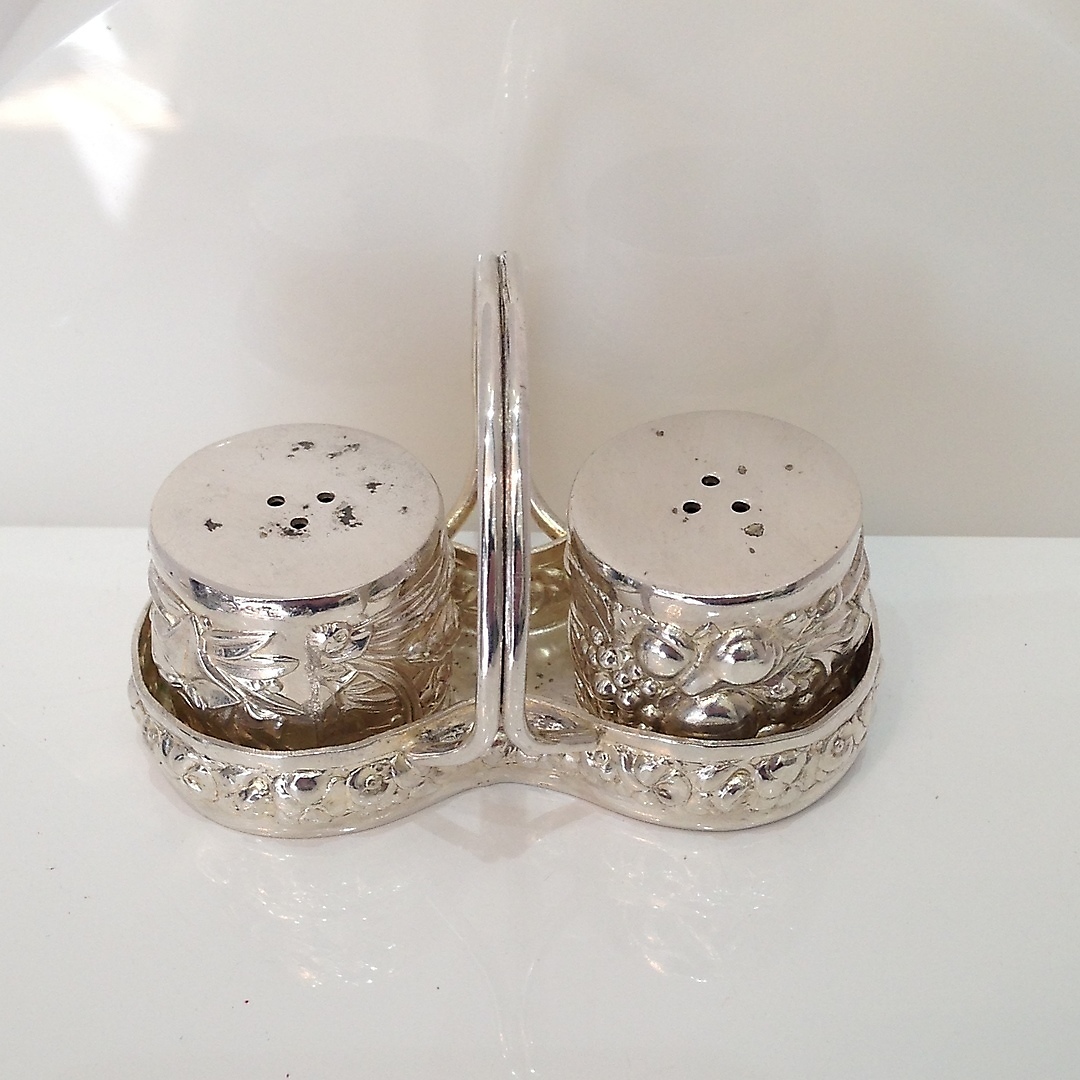 660431. VINTAGE SILBER SALZ & PFEFFER TÖPFE.