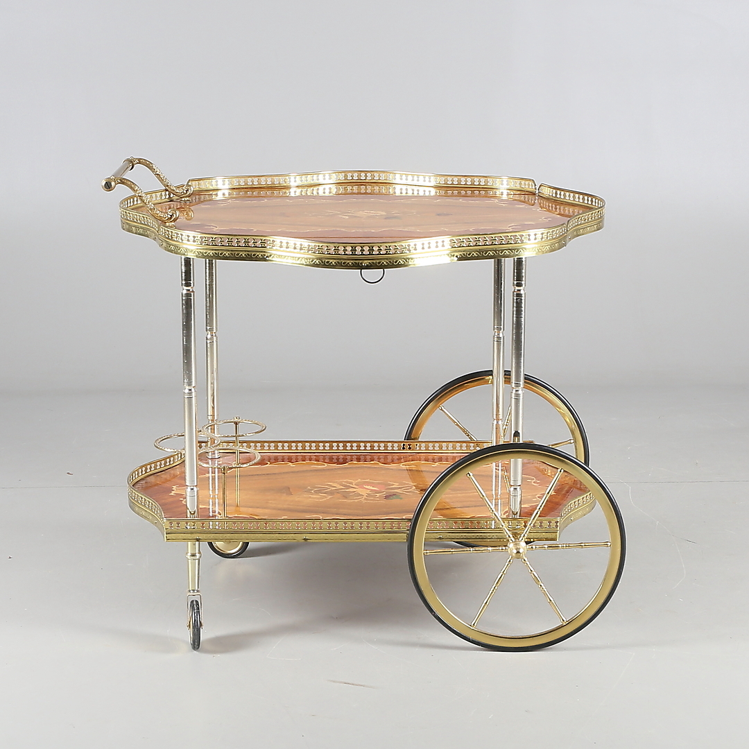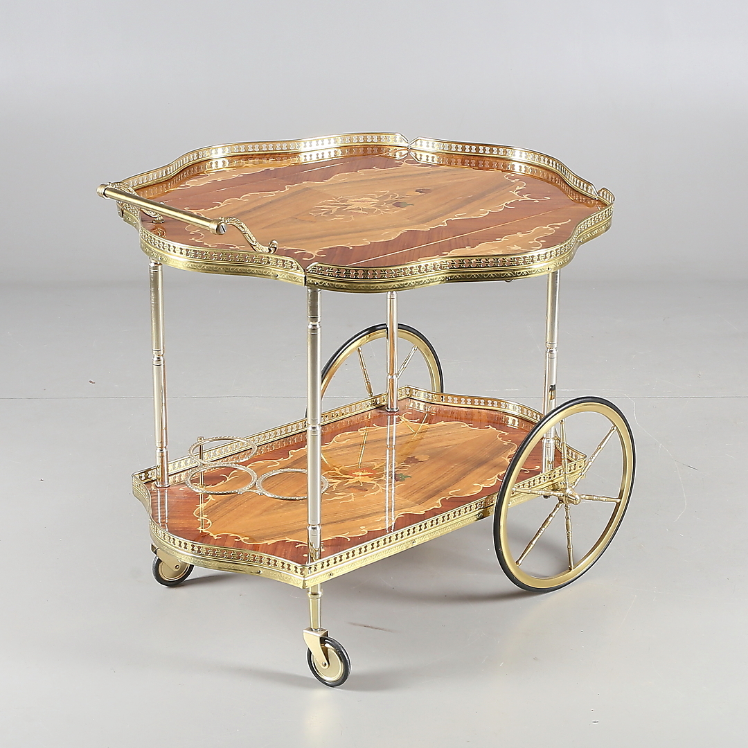 661595. SERVIERWAGEN, Messing/Intarsien, 1900er.