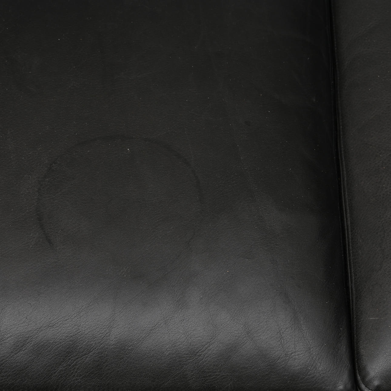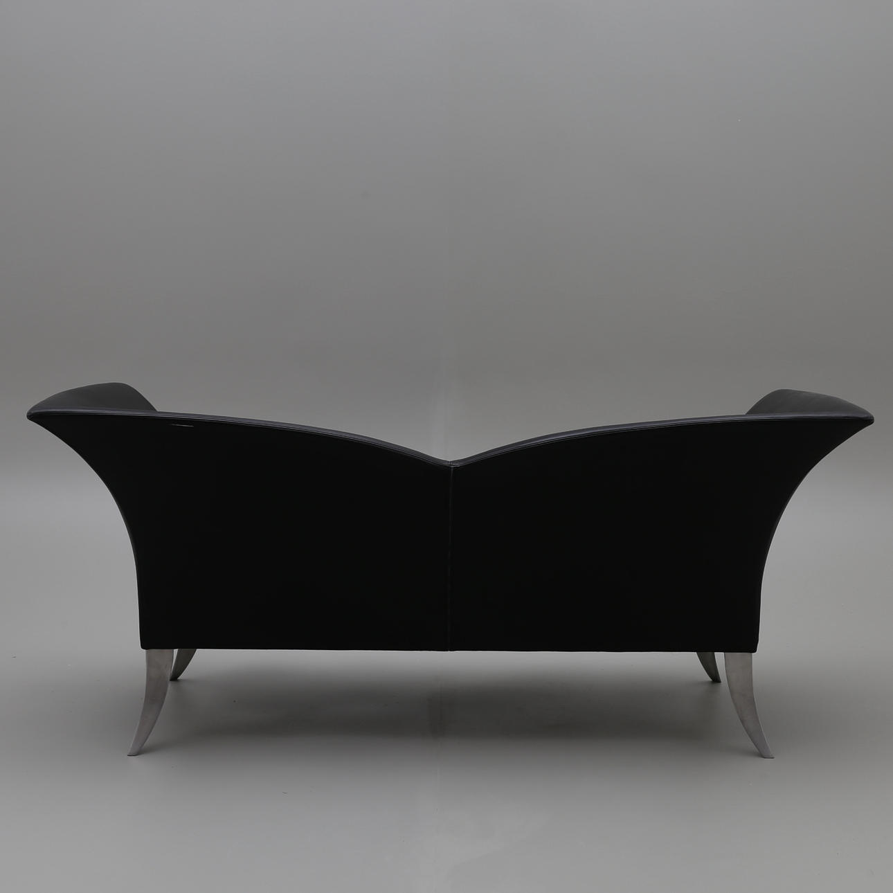 In schwarzes Leder gekleidet. Beine aus Aluminium. Länge 172 cm.