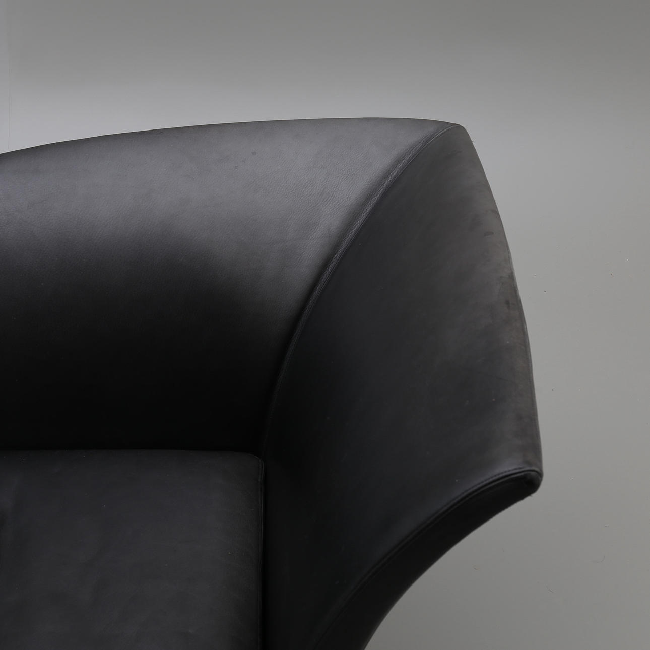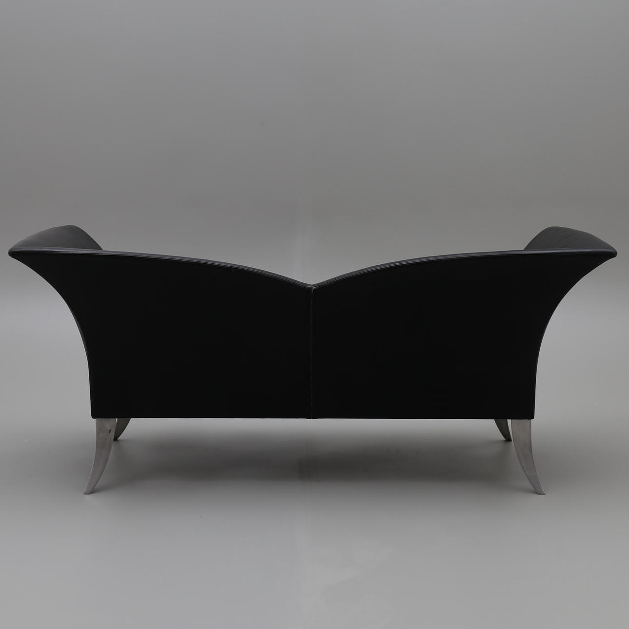 In schwarzes Leder gekleidet. Beine aus Aluminium. Länge 172 cm.