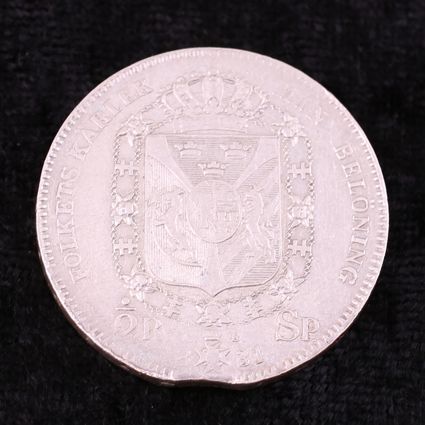665574. SILBERMÜNZE, 1/2 Riksdaler - Hartmetall, Carl XIV Johan, 1831.