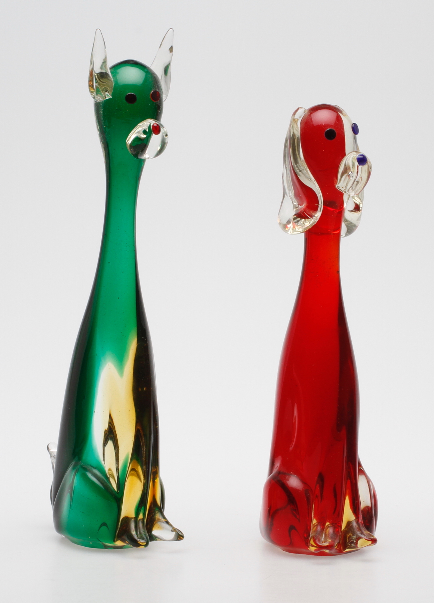 67642. FIGUREN, 2 Stück, Glas, wahrscheinlich Murano.