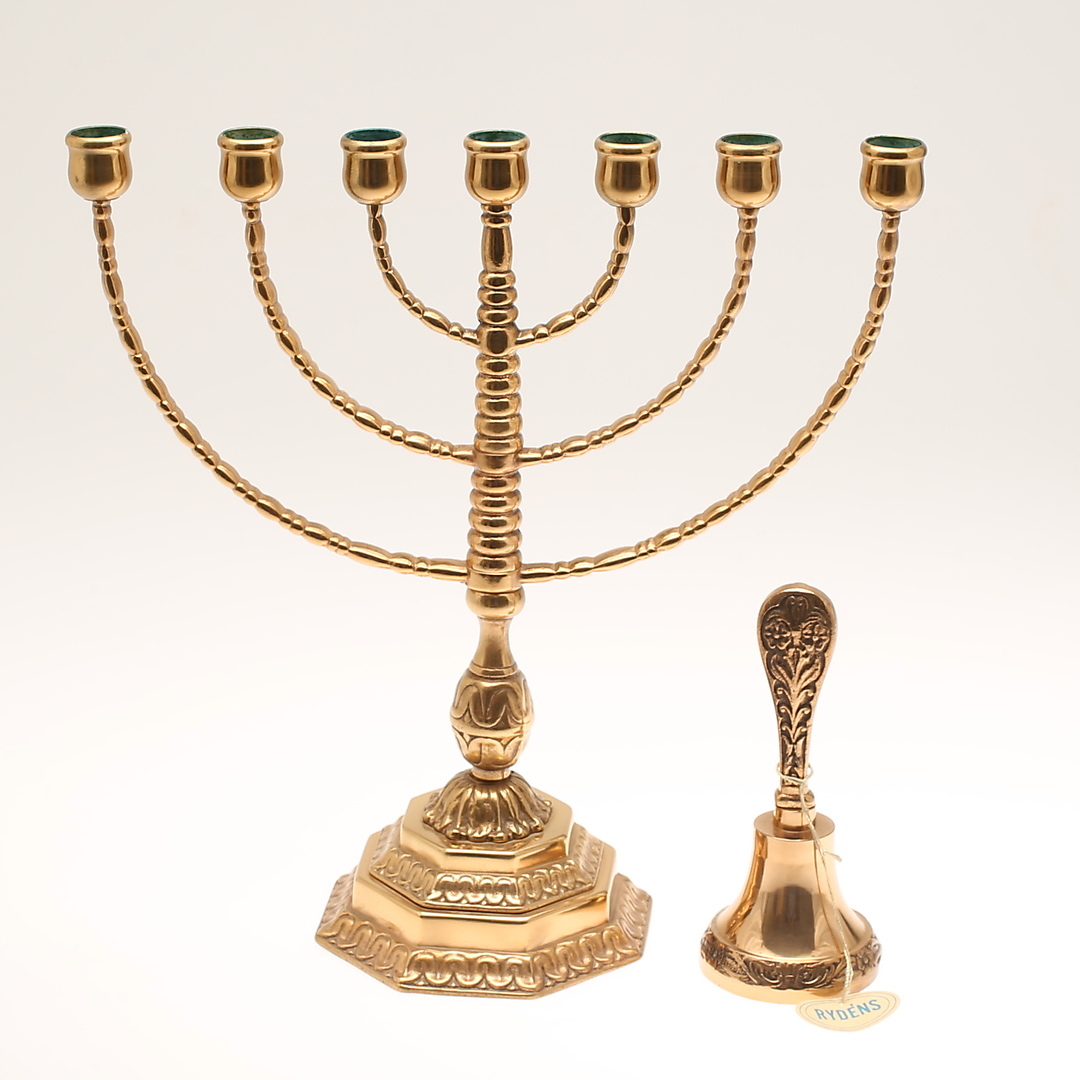 679997. KERZENHALTER, 7-armig, Messing. TISCHSPINDEL, Messing.
