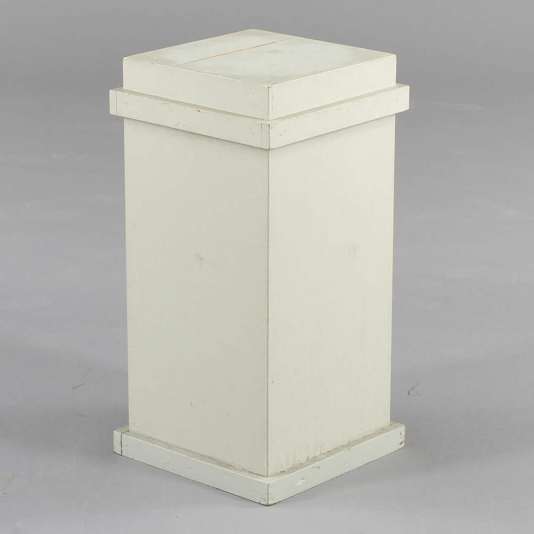 68752. SÄULE MIT POSTAMENT, grau lackiertes Holz.