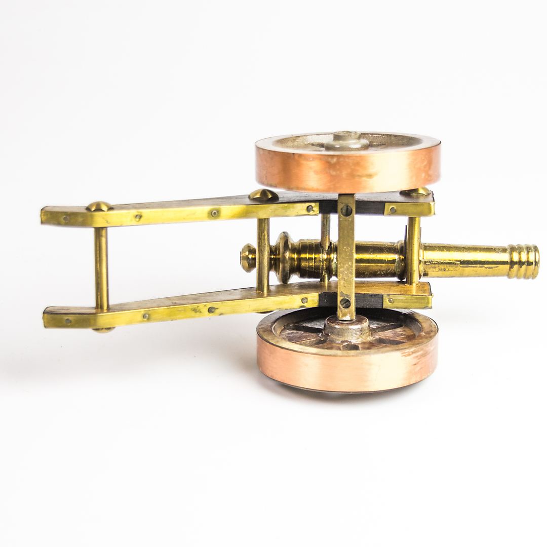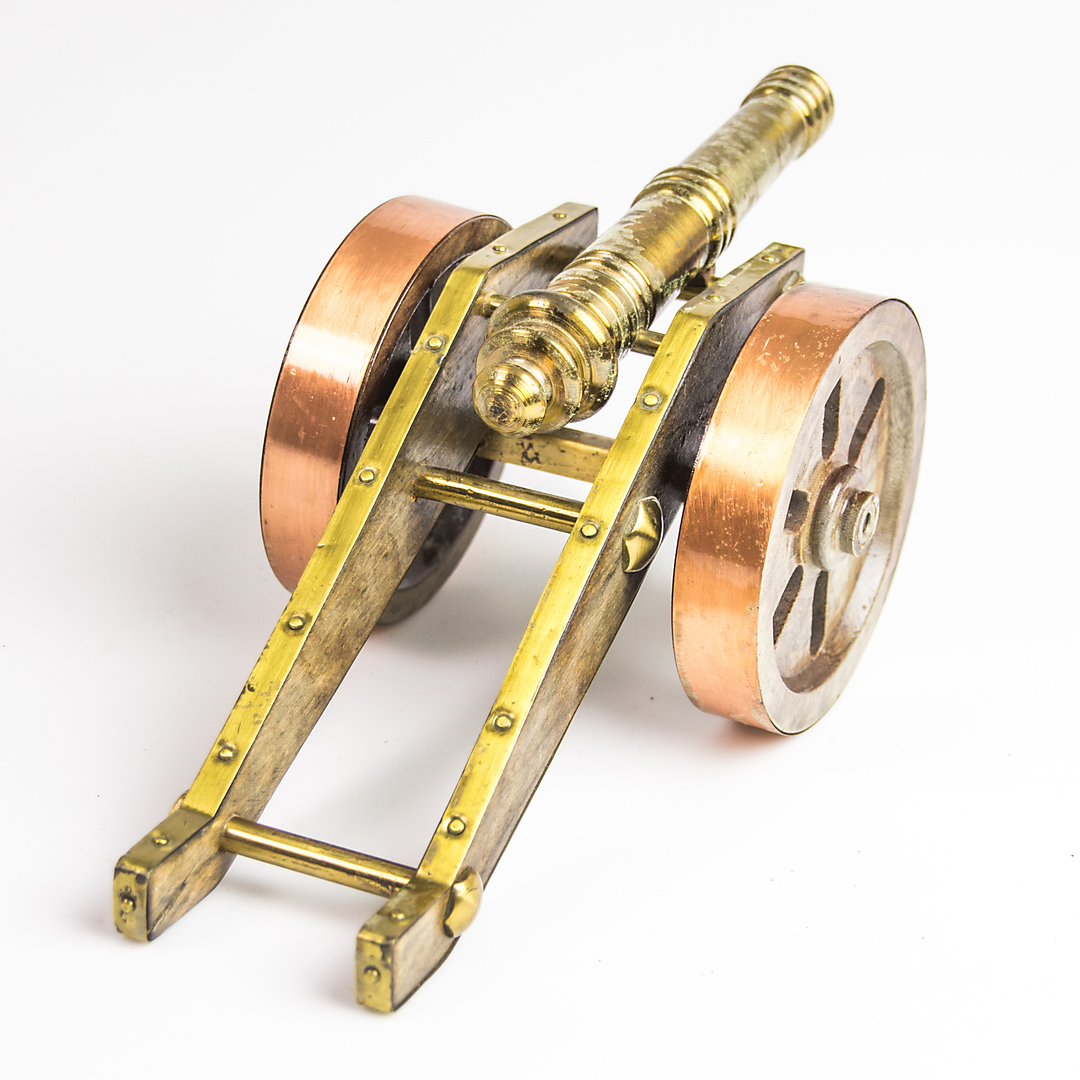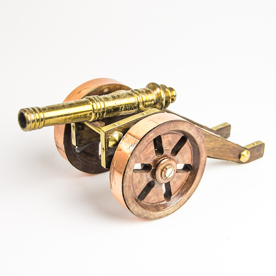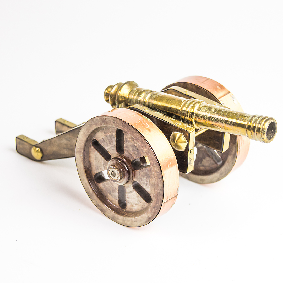 687995. TISCHKANONE, Messing mit Holzlavette.