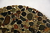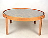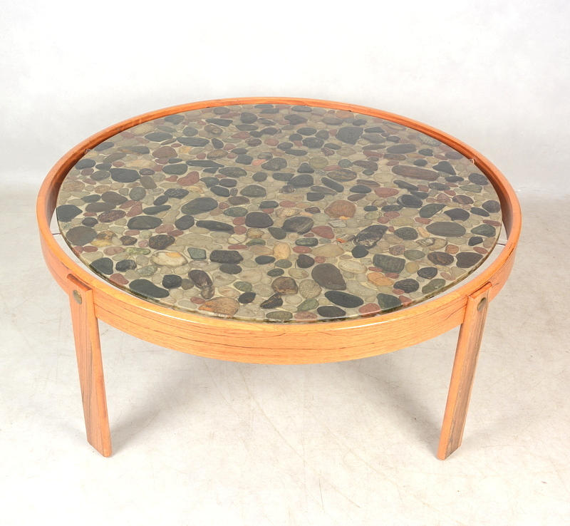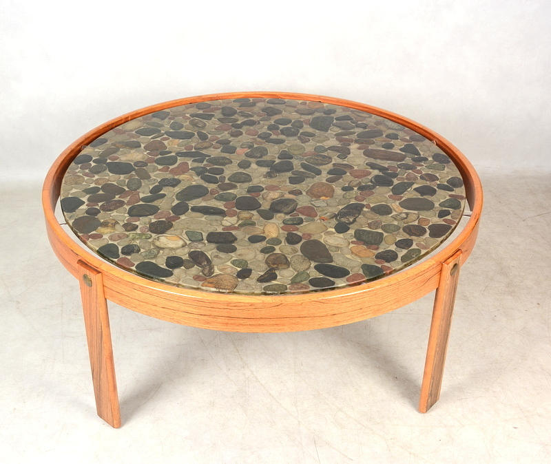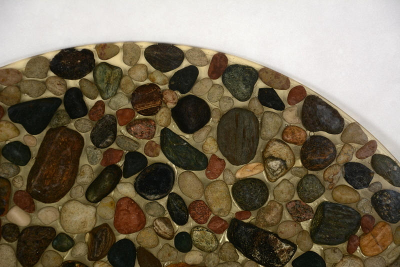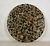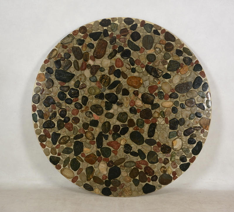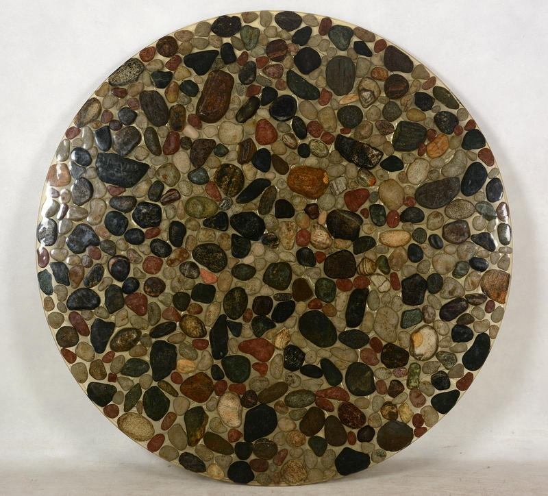 Tischplatte mit eingelegten Steinen, Durchmesser 110 cm, Höhe 47 cm.