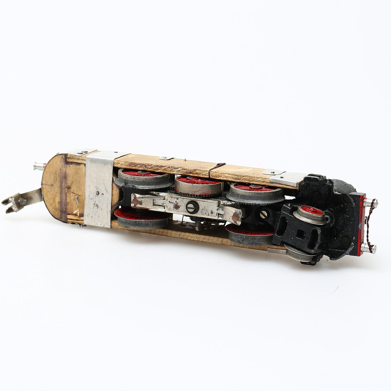 Einband in gutem Zustand mit kleineren Beschädigungen. Fahrgestell mit Schäden und fehlenden Teilen.