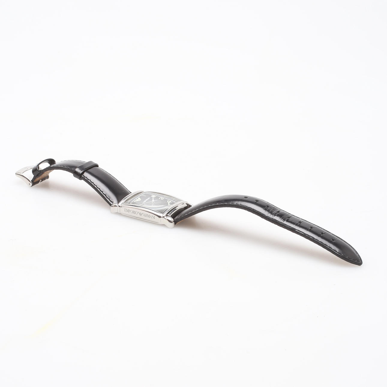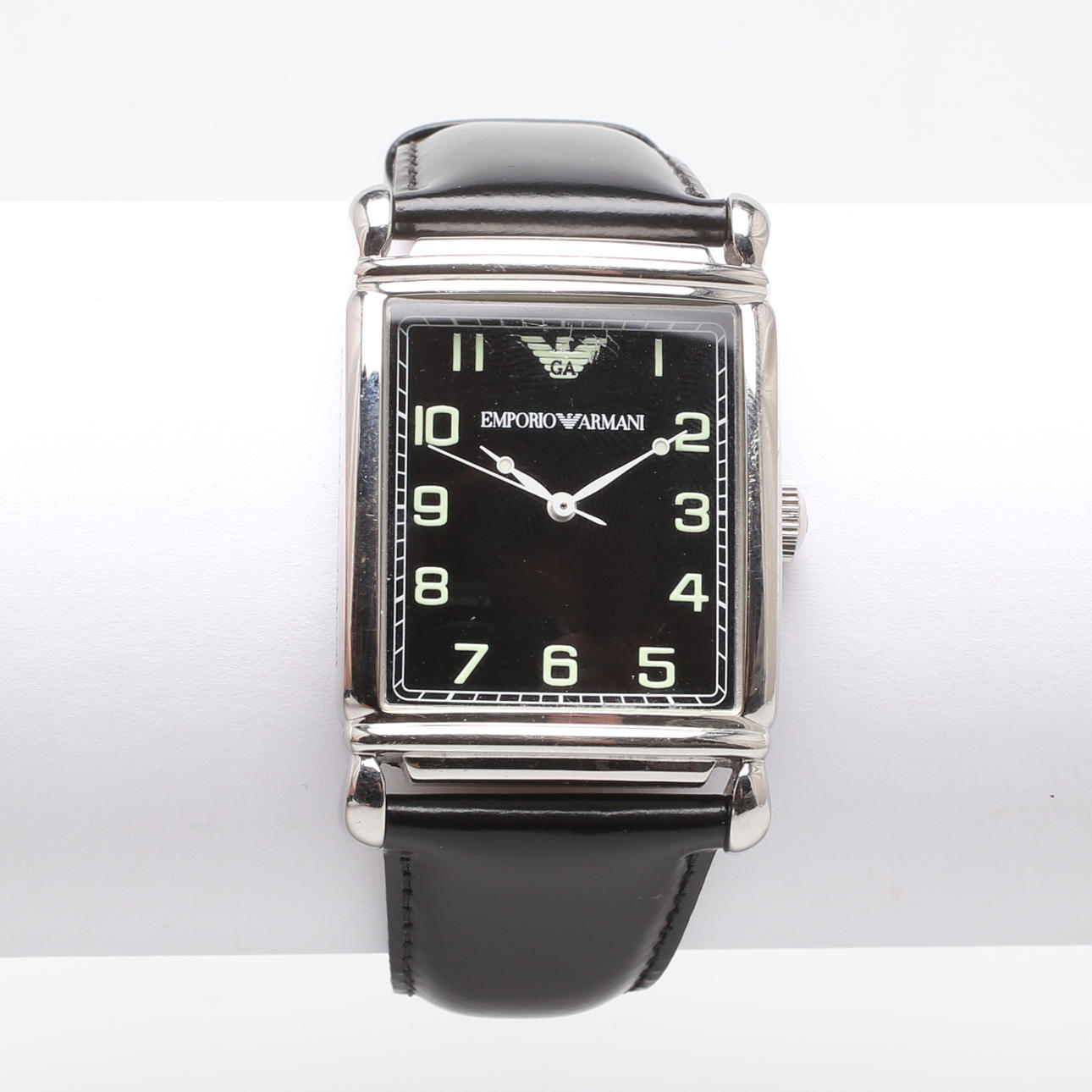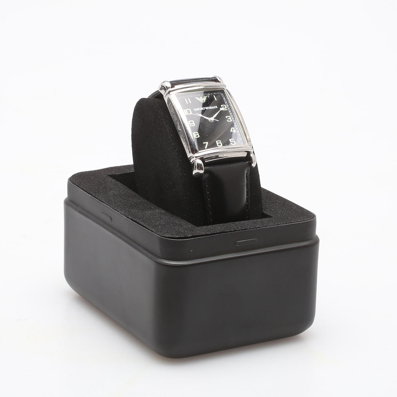 Herrenarmbanduhr, Panzermodell, Emporio Armani AR 0206. Stahlgehäuse, schwarzes Zifferblatt mit arabischen Ziffern.