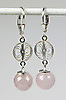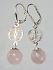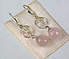 Ohrringe in Silber 925 gearbeitet, Klappohrbügel mit beweglich montierten verziertes Zwischenteil von 10 mm Durchmesser, als Abschluss facettierte Rosenquarzkugel von 10 mm Durchmesser, Länge 43 mm, Gewicht 4,8 Gramm.