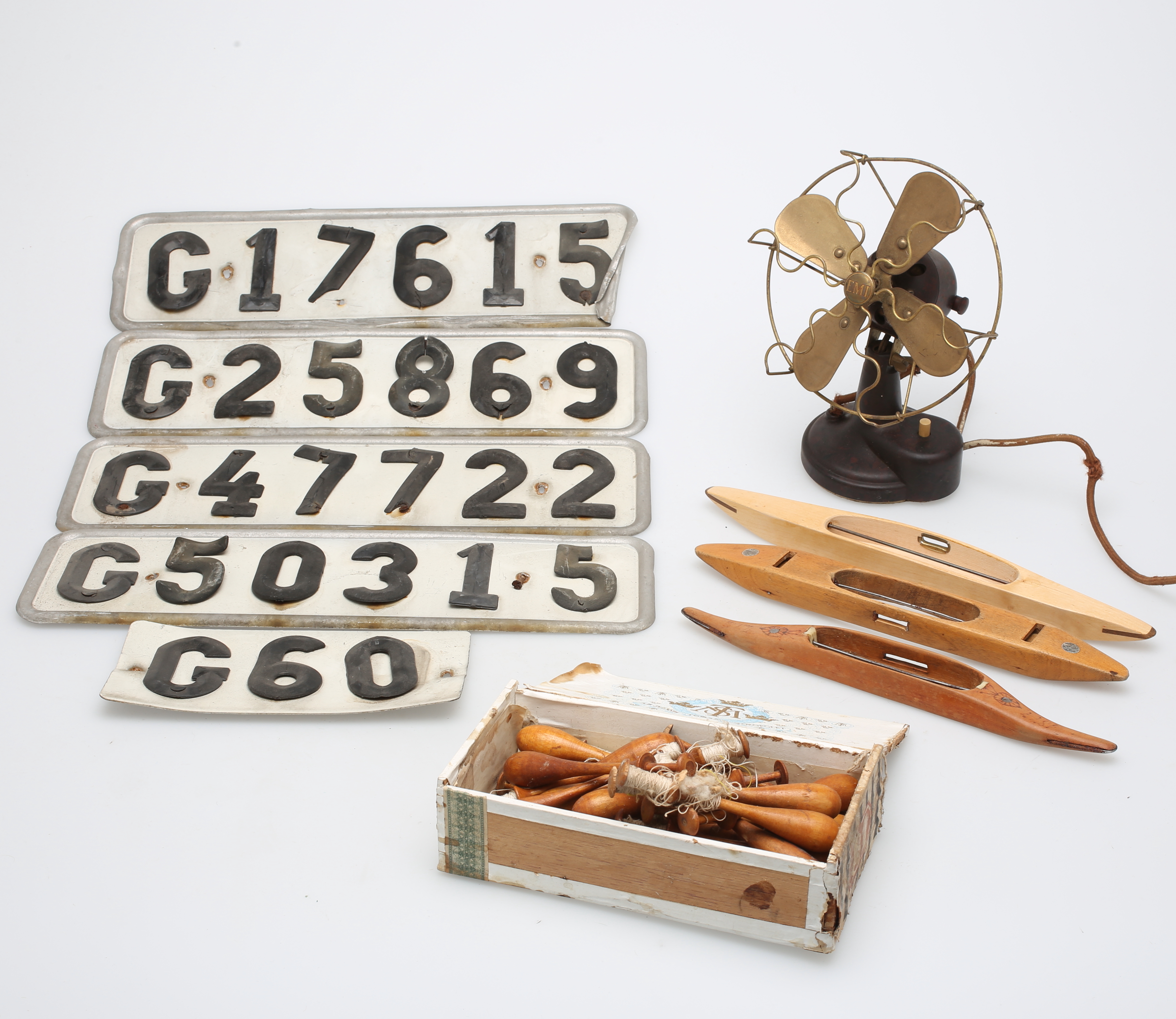 698685. KENNZEICHEN, TISCHVENTILATOR Emi, Messing/Bakelit etc.