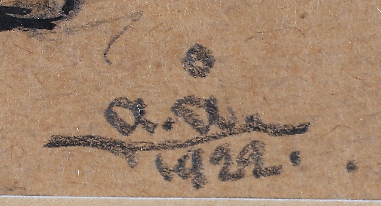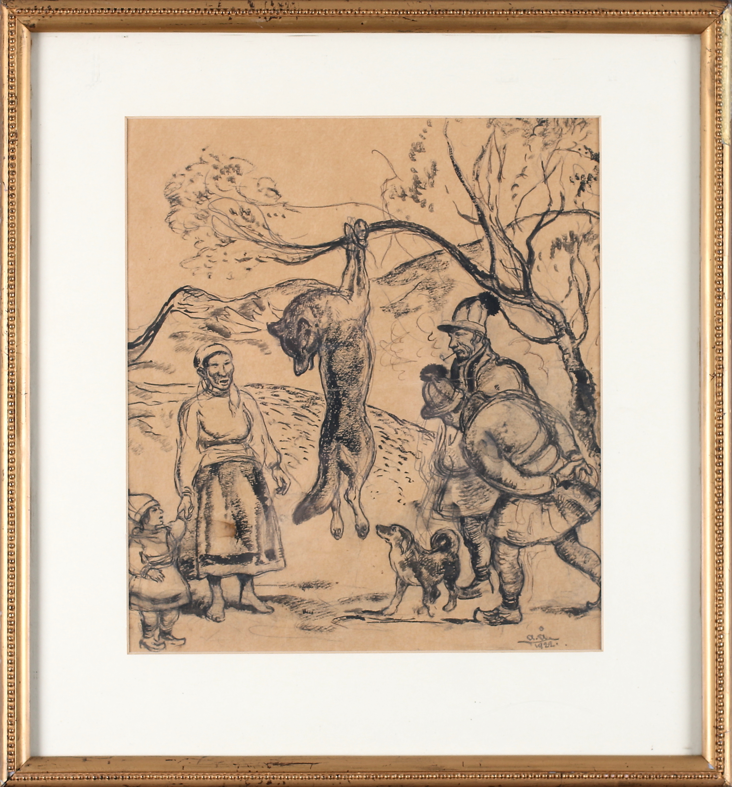 705038. ACKE ÅSLUND. Wolfsjagd unter den Sami, Zeichnung, Tusche, signiert und datiert 1922.