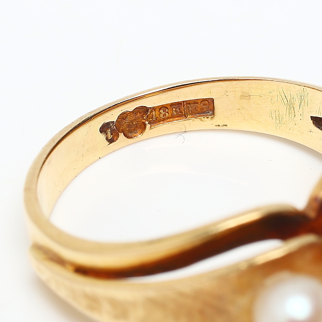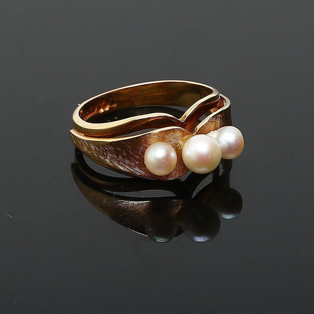 706063. RING, 18 Karat Gold, Zuchtperlen, Luleå 1960.