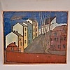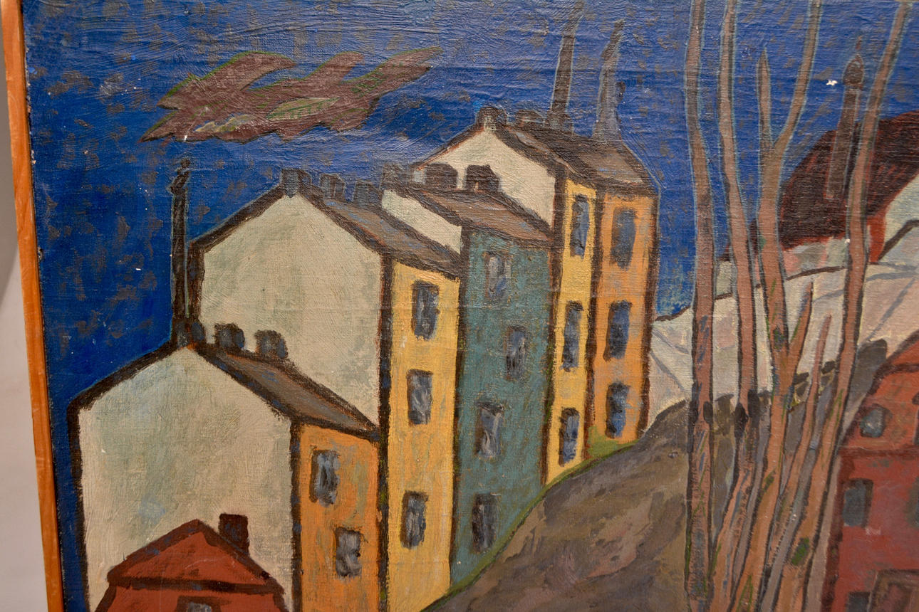 710311. OIDENTIFIERAD KONSTNÄR. Kubistische Landschaft mit Häusern.