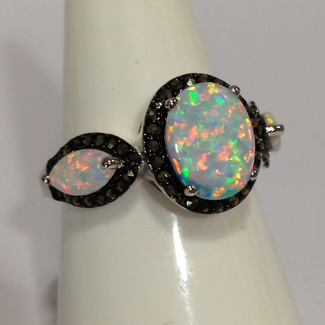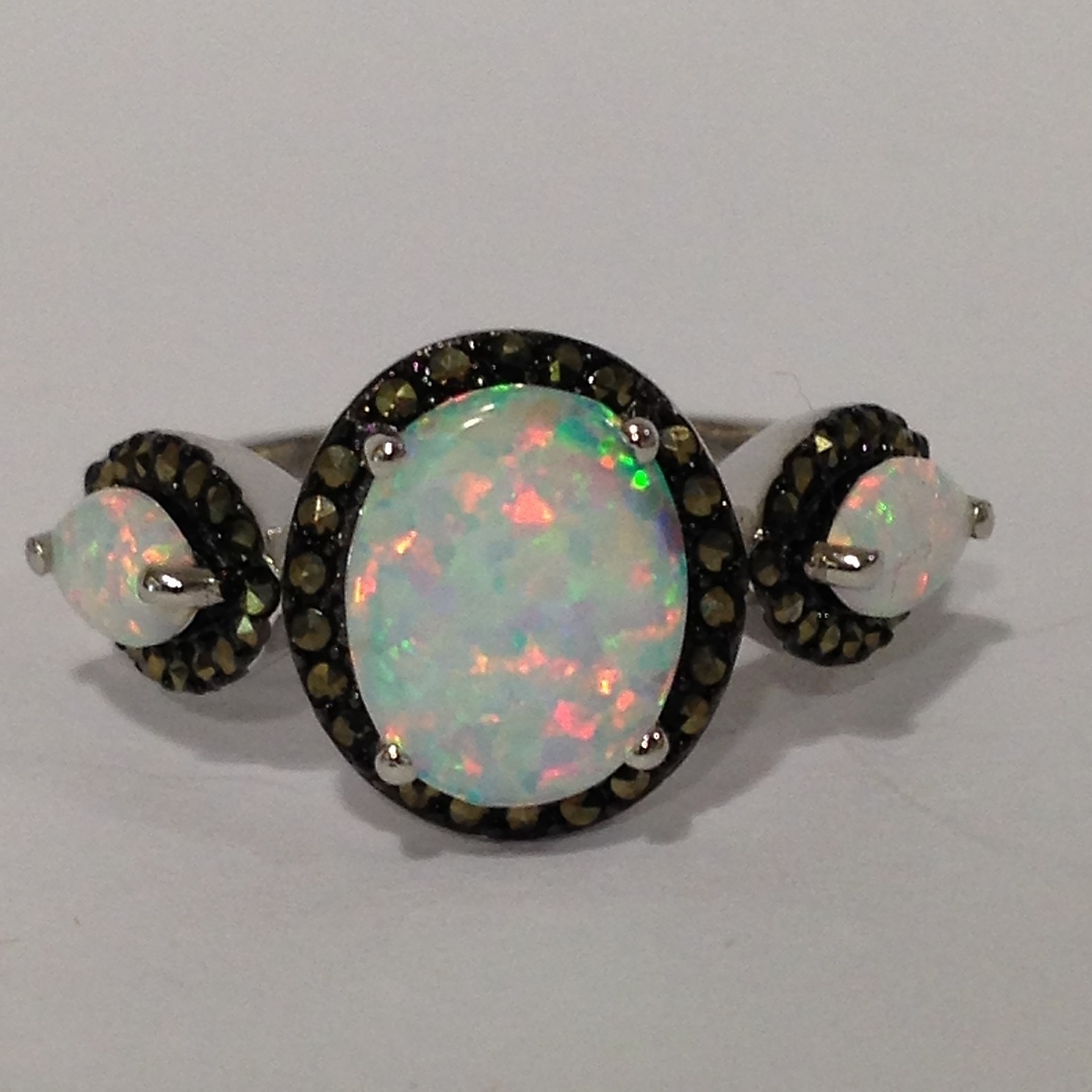 712378. VIKTORIANISCHER OPALIT- & MARKASIT-RING.