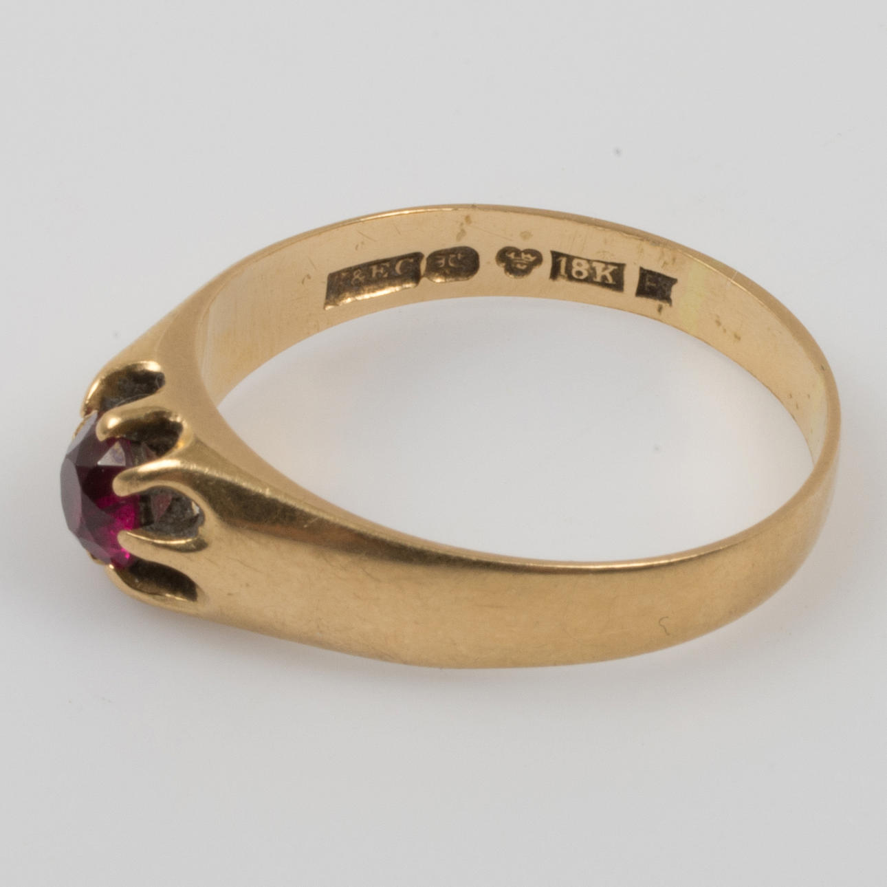 712955. RING, 18 K Gold mit rotem Stein.