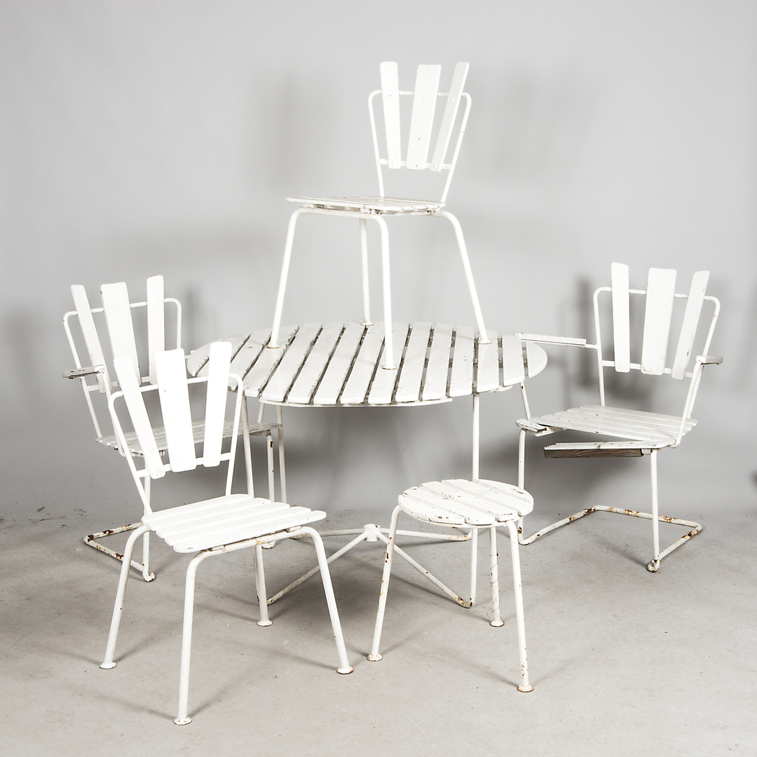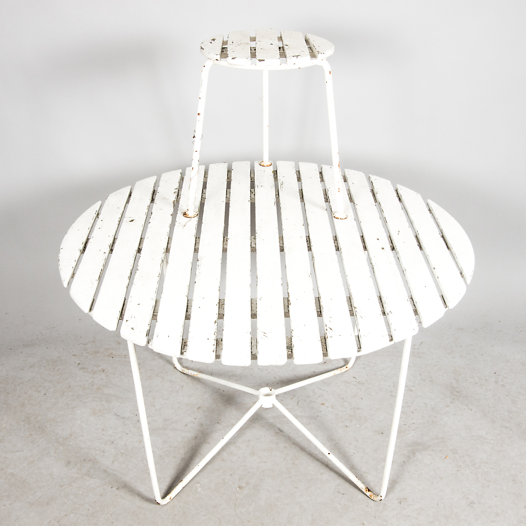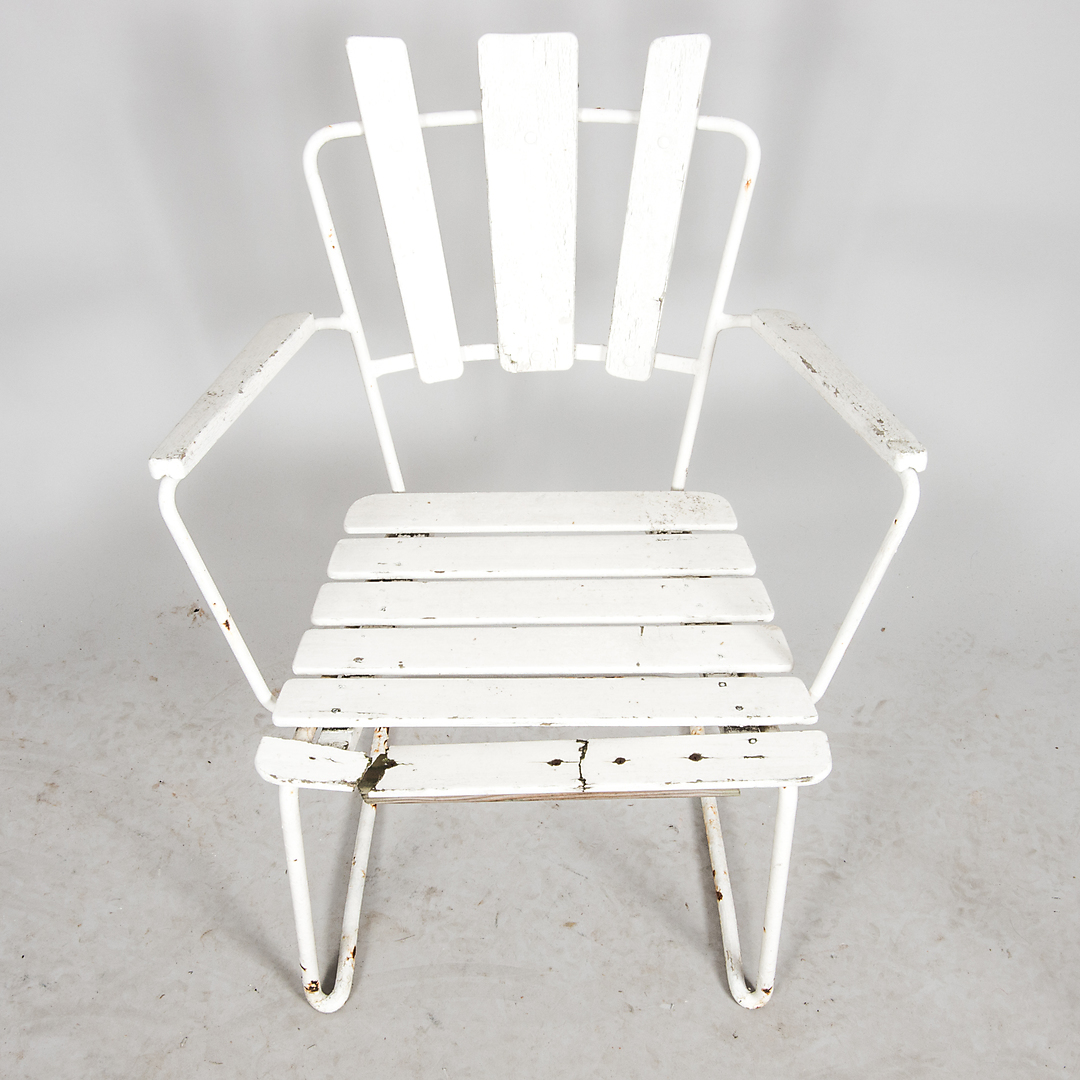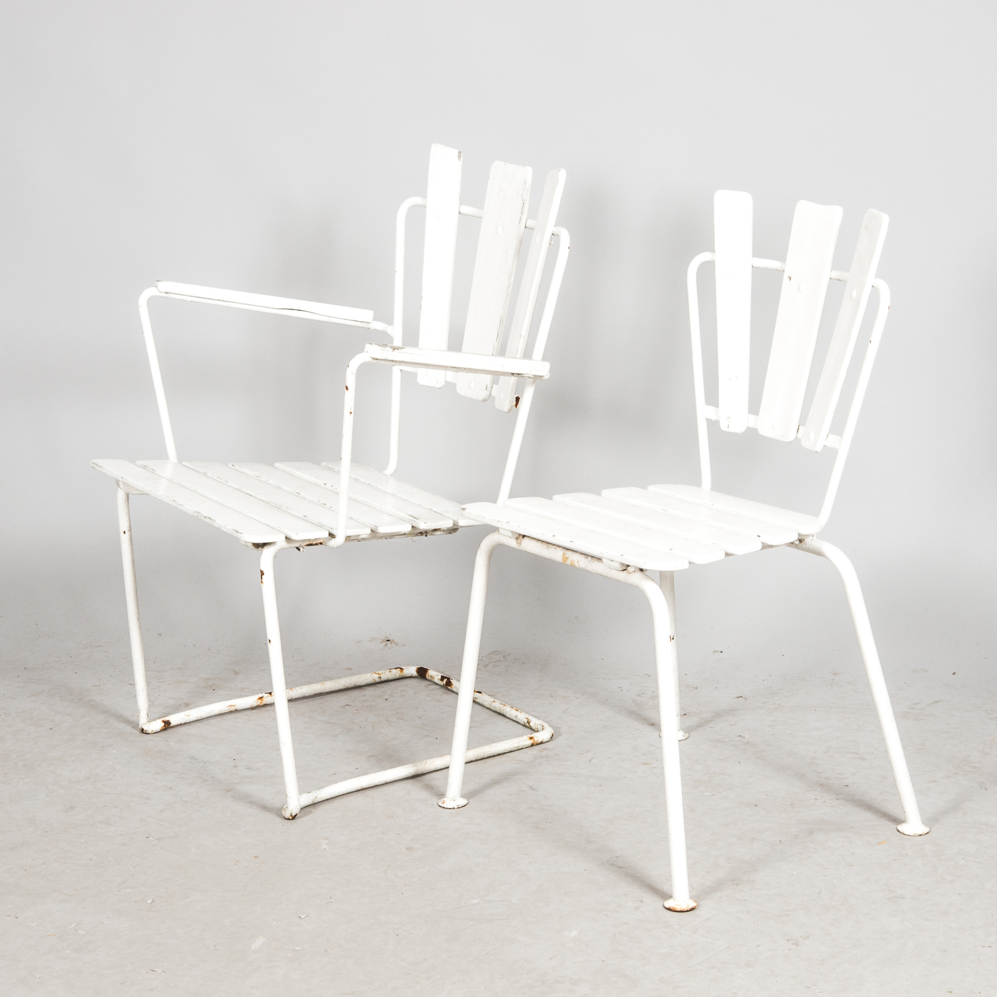 714442. GARTENMÖBEL, weiß lackiertes Holz mit Metallgestell.