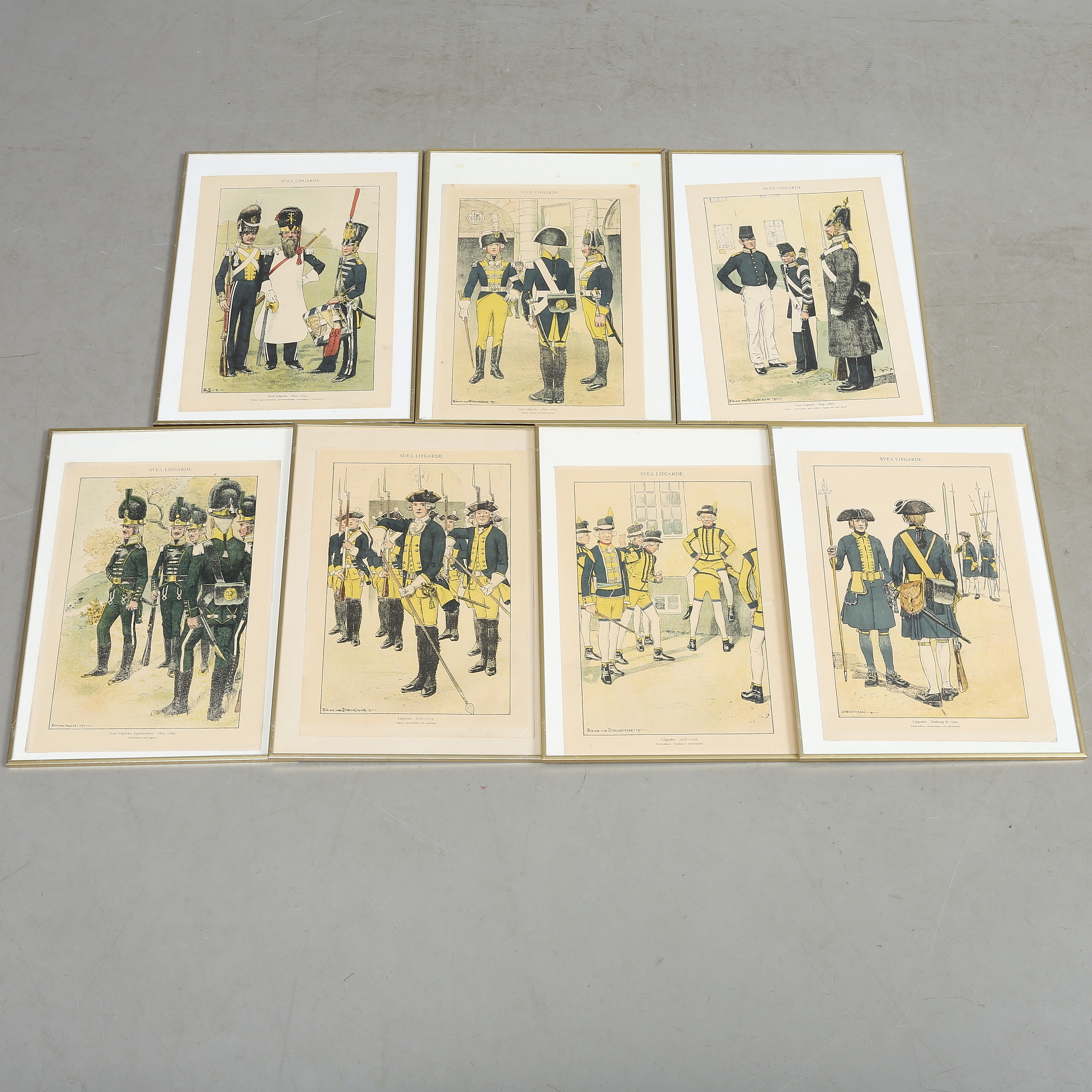 714833. UNIFORMPLATTEN, 7 Stück, lithografische Drucke, 20. Jahrhundert.