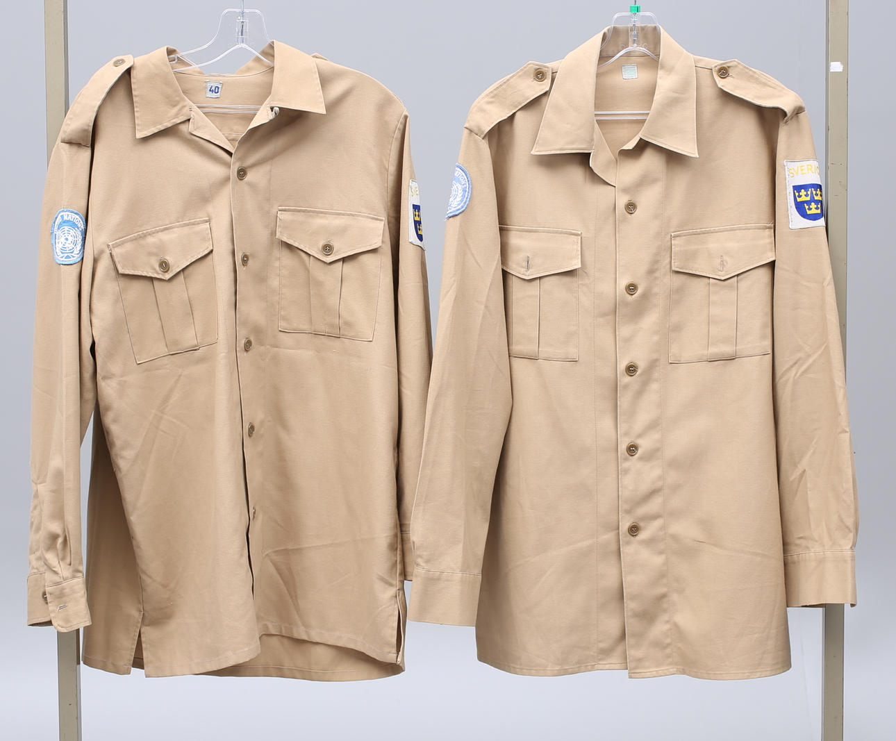 Hemden, 2 Stück, gekennzeichnet mit Schweden und den Vereinten Nationen, Größe 40.