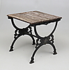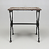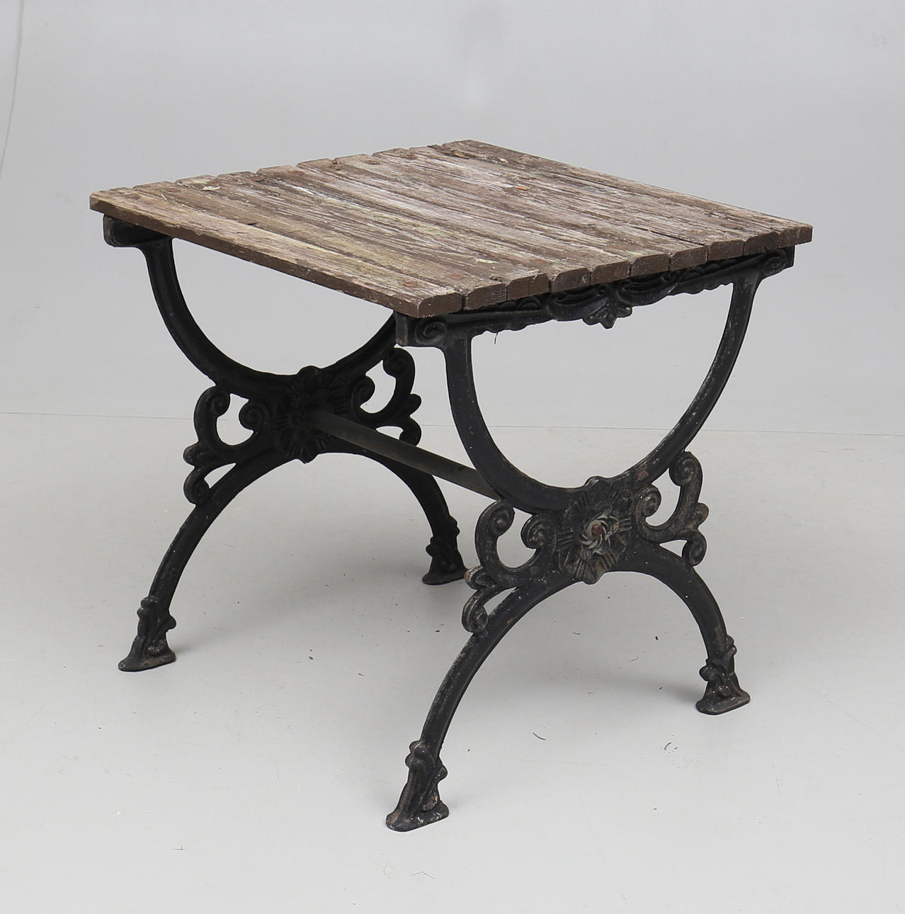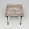 Gemalt. Scheibe aus Holzlatten. Gekoppelte Beinposition. Länge 64. Breite 64. Höhe 65 cm.