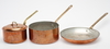 72632. TÖPFE und PFANNE, 3 Teile, Kupfer, Frankreich.