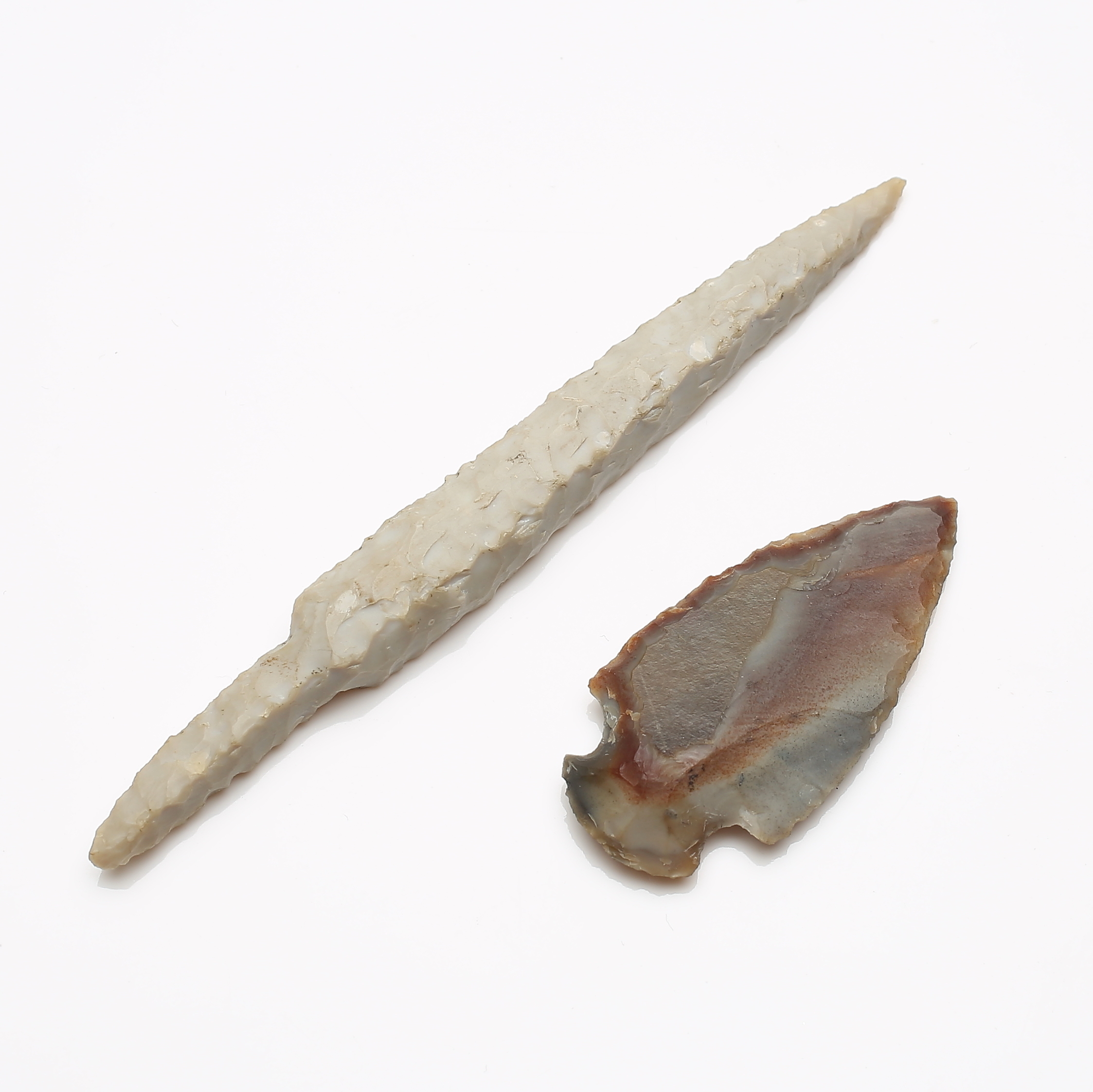 726535. PFEILSPITZEN, 2 Stück, Feuerstein, möglicherweise Steinzeit.