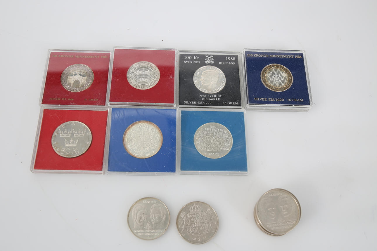 MÜNZE, Silber, 18 Stück, Nennwert 1.500 SEK.