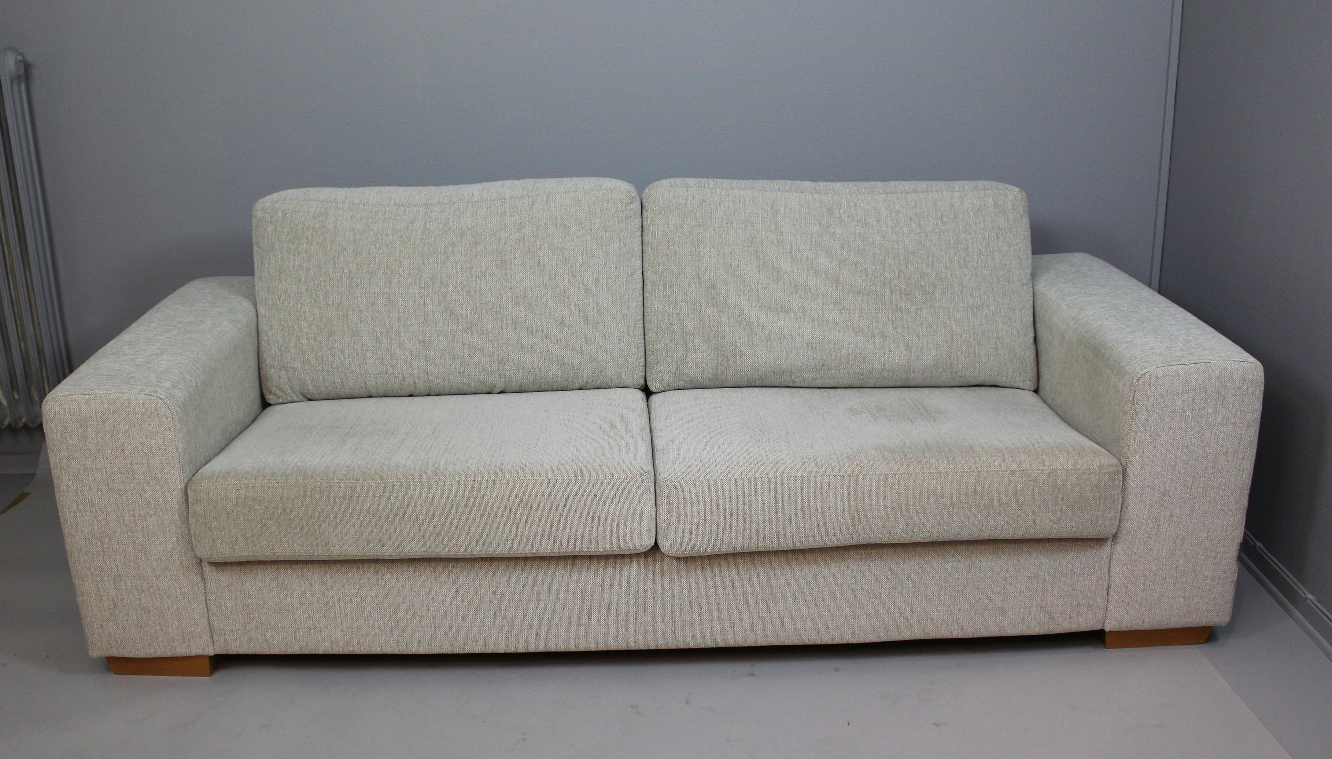 73819. 3-SITZER-SOFA mit Puff in grauem Stoff (2). 2000er.