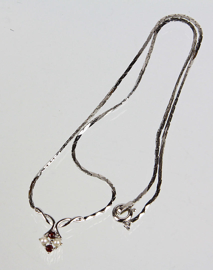 741676. COLLIER, Granat Perl Collier Silber 925.