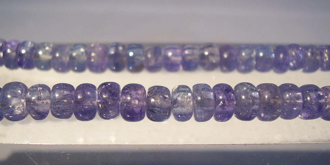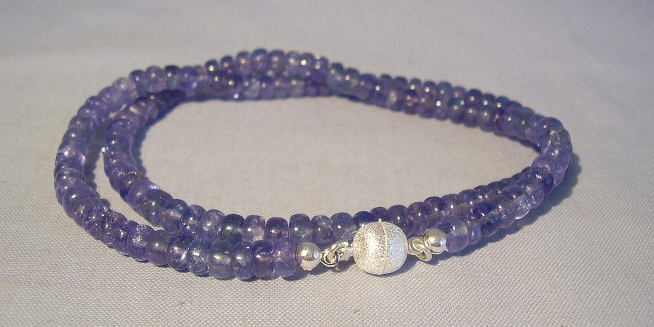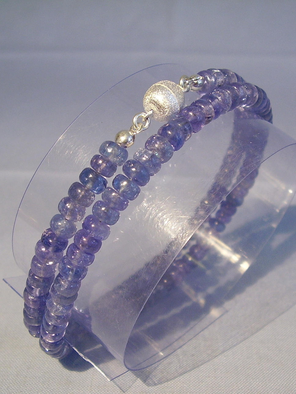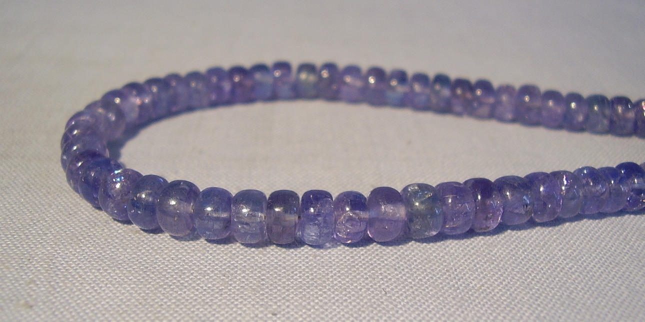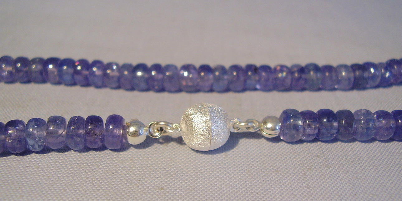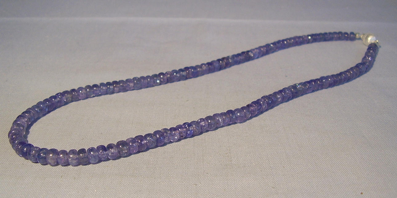 Die Collierkette ist aus fein polierten Tansanit-Rondellen in großer Farbintensität und annähernd gleicher Größe ausgeführt.